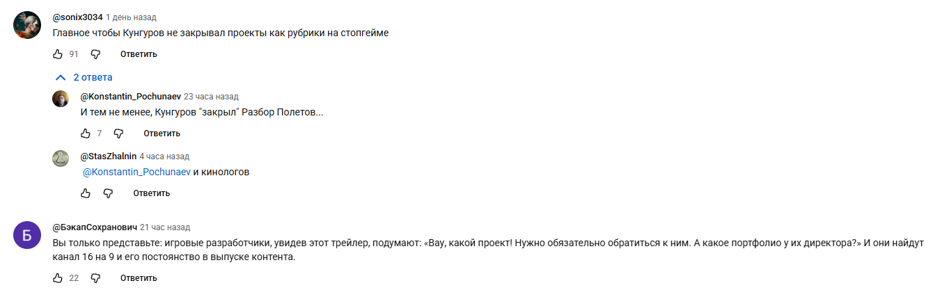 На самом деле жалко наблюдать за смертью стопгейма. Дело не в обзорах и игрожурстве, они тут вполне себе усреднённые продажничи, они довольно давно были такими. А дело во всяких видео по мотивам видевоигр, просто интересные идеи для стримов и проч. Смотреть с ними игровые выставки были весело. Сам Гальперов норм довольно, контент пилит неплохой, но если честно вот кровь и плоть игрожурская, хвалил всякую чушню, недавно совсем даже открыто за чемоданами к продолжению Смуты заехал. С другой стороны если кто-то не иронично хвалит того же Тоху, то Гальперов на его фоне смотрится даже выгоднее.