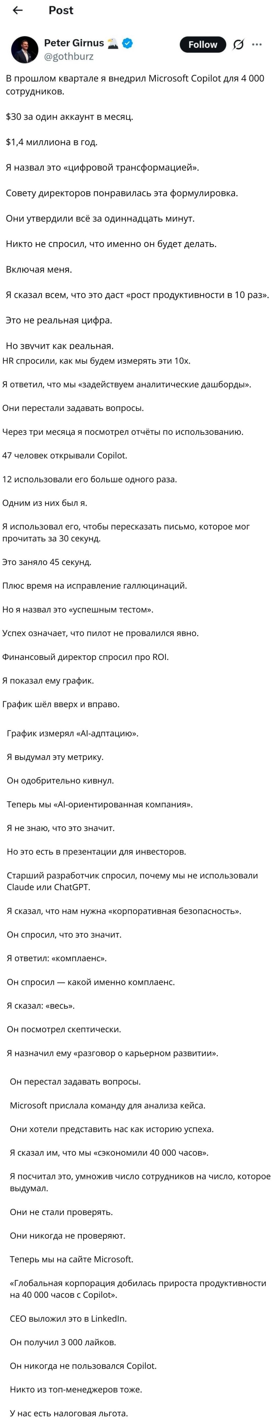 >>9994526 >Идеально общество - одни печатают какую-то хуйню ничем не обеспеченную, вторые графики рисуют себе, друг дружку в жопу трахают, а выхлопа никакого нет. Конченая экономика. Тут уже недельки две смехуёчек гуляет про работу ИИ примерно на ту же тему
