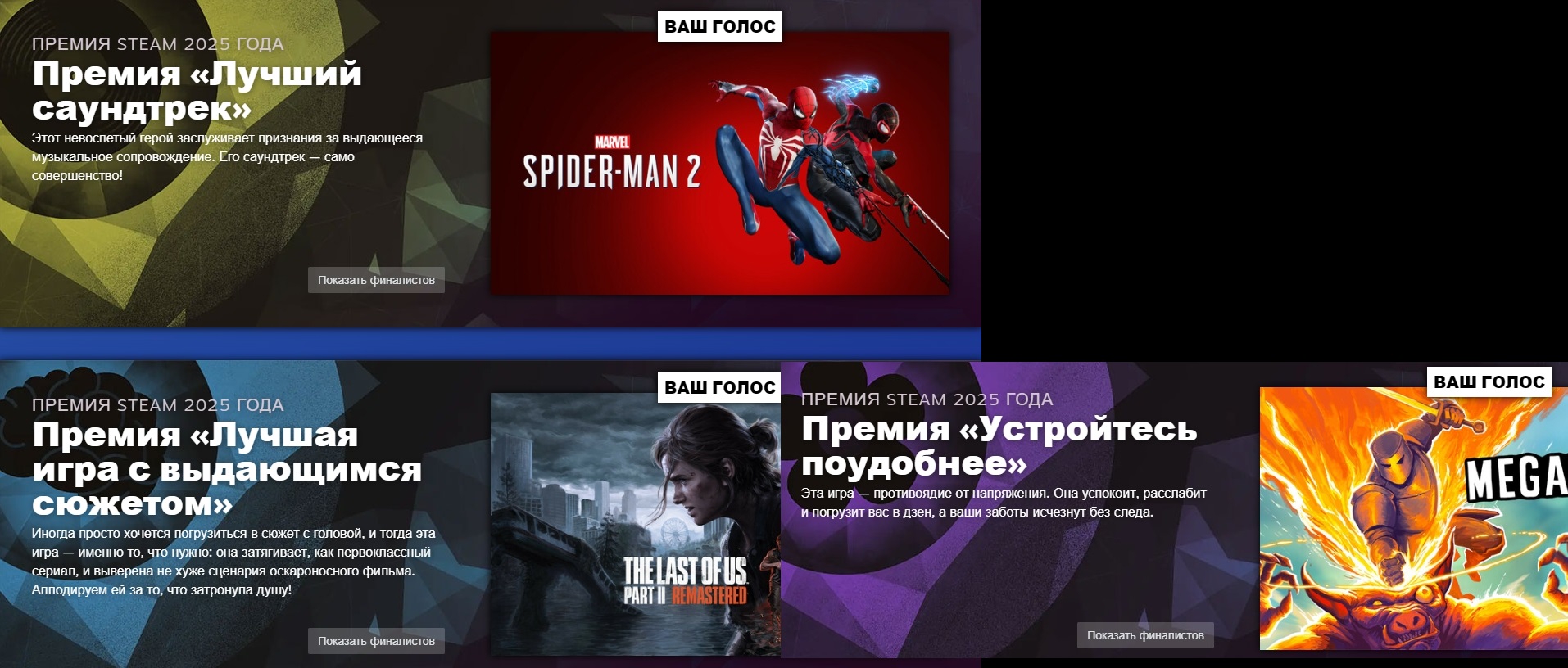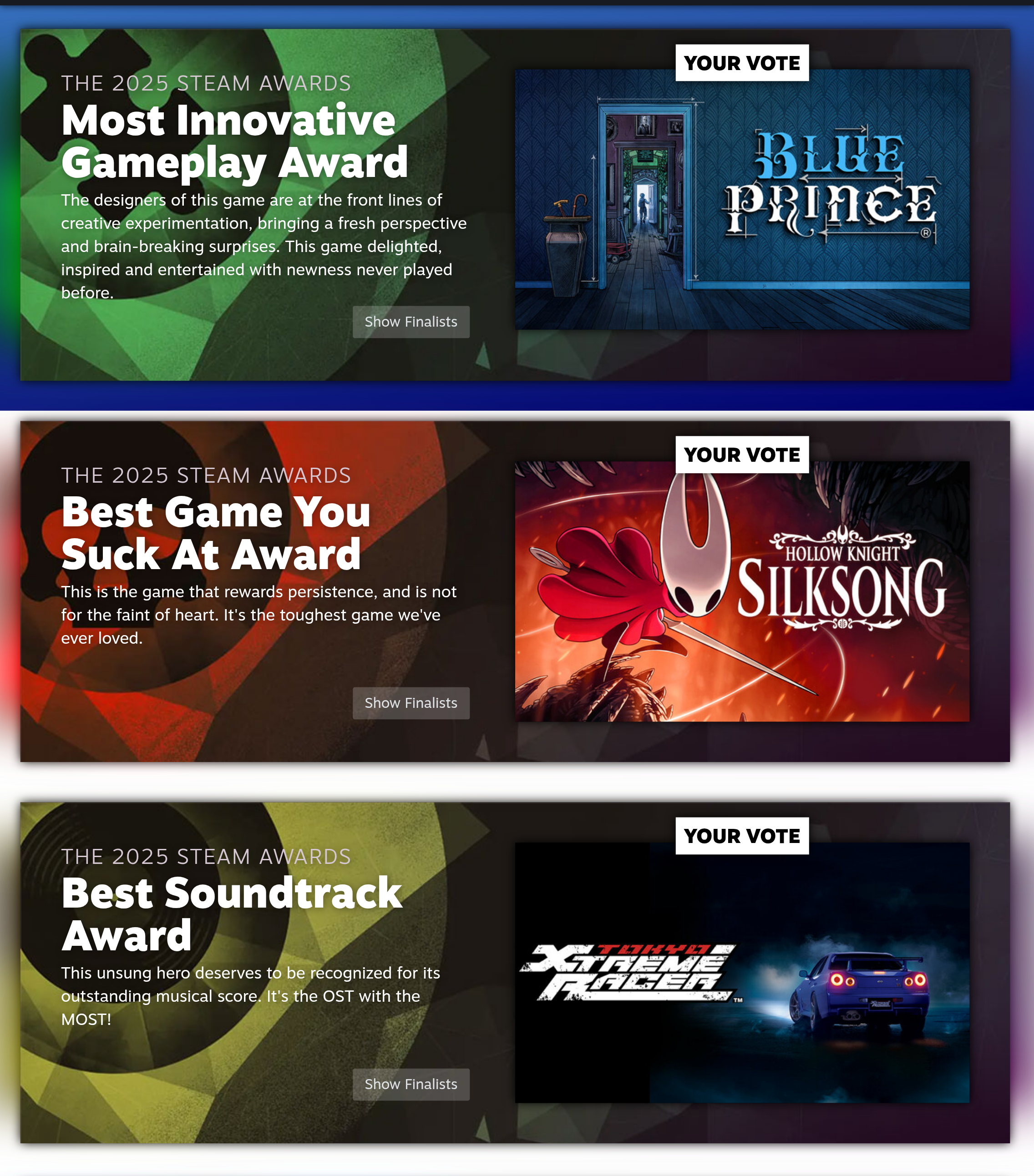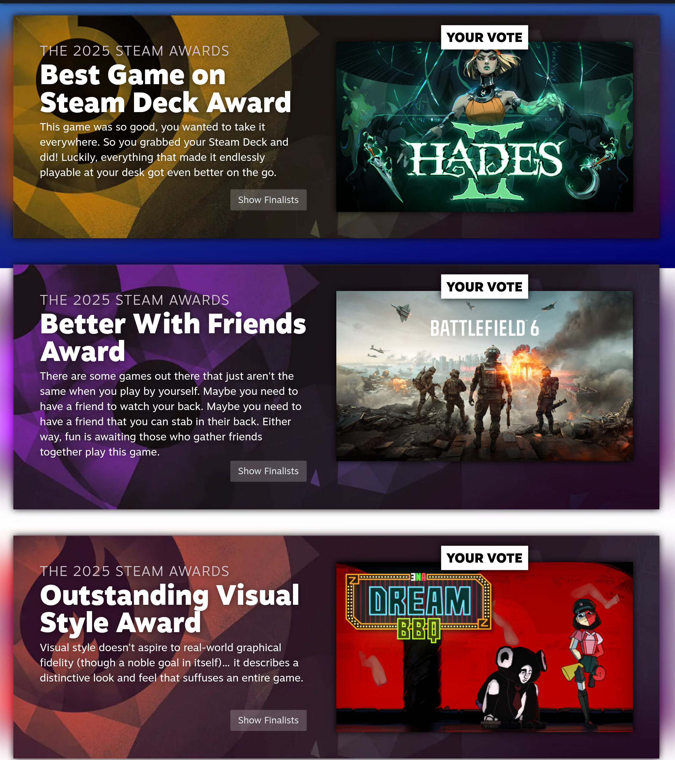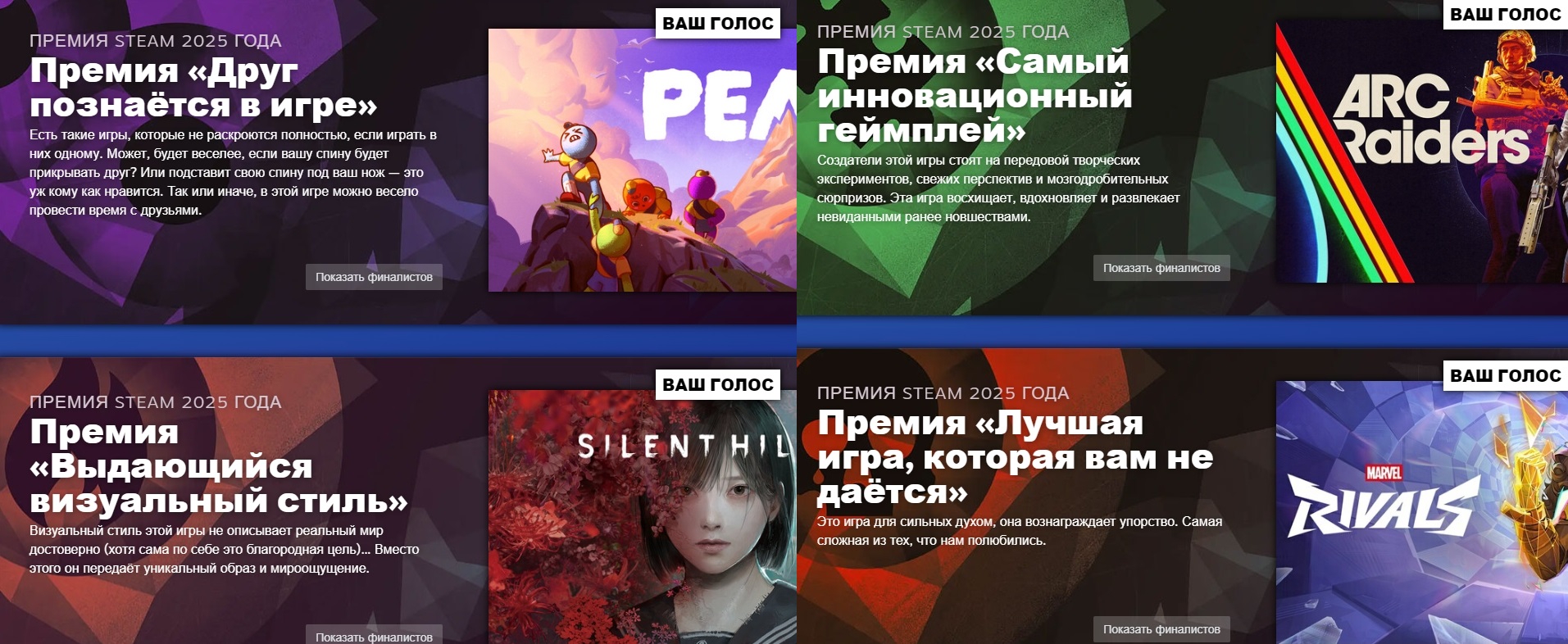 Началось пользовательское голосование за премию The Steam Awards 2025