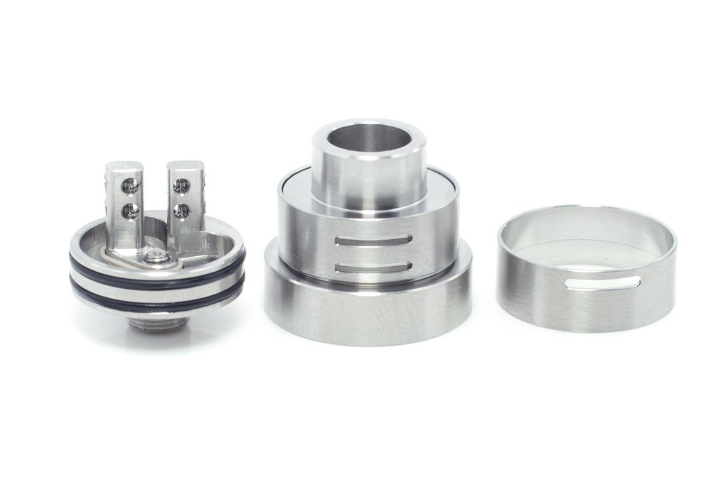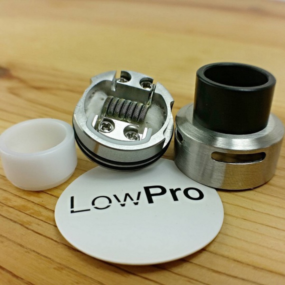 Сам по себе клон хорош. Приехал ко мне в обычной белой картонке. Комплект - по паре орингов, заглушки (3 пары с разными диаметрами, одна глухая для односпирального режима), металлический и красный дриптипы-коротыши. Прикольные. Чаще всего дриптип использую стандартный, ничего не подобрал из того что у меня есть - все садятся почти на центральную стойку. Хотя вот эти https://www.fasttech.com/p/2103502 с комплектным коротышем довольно неплохо смотрятся.