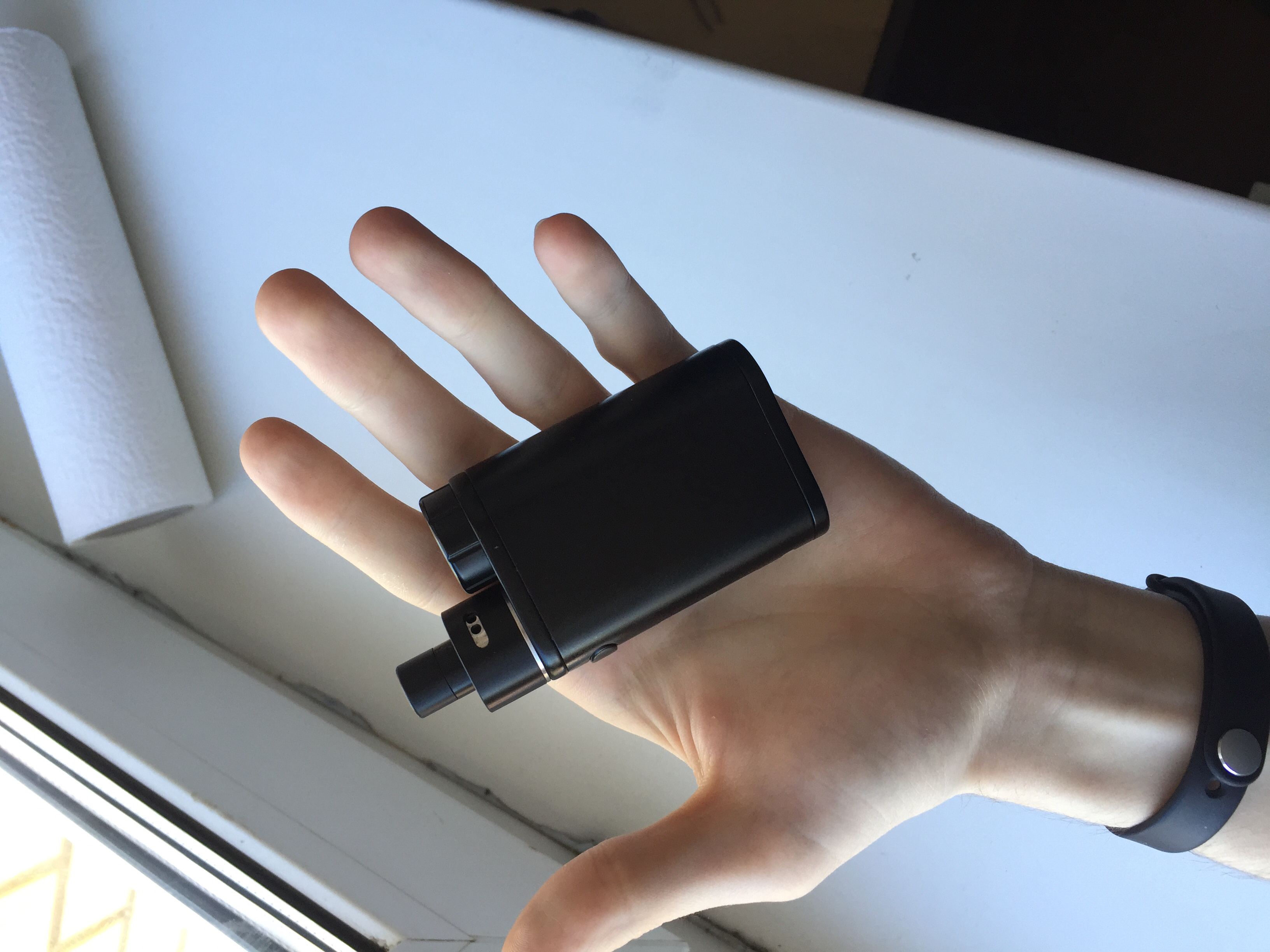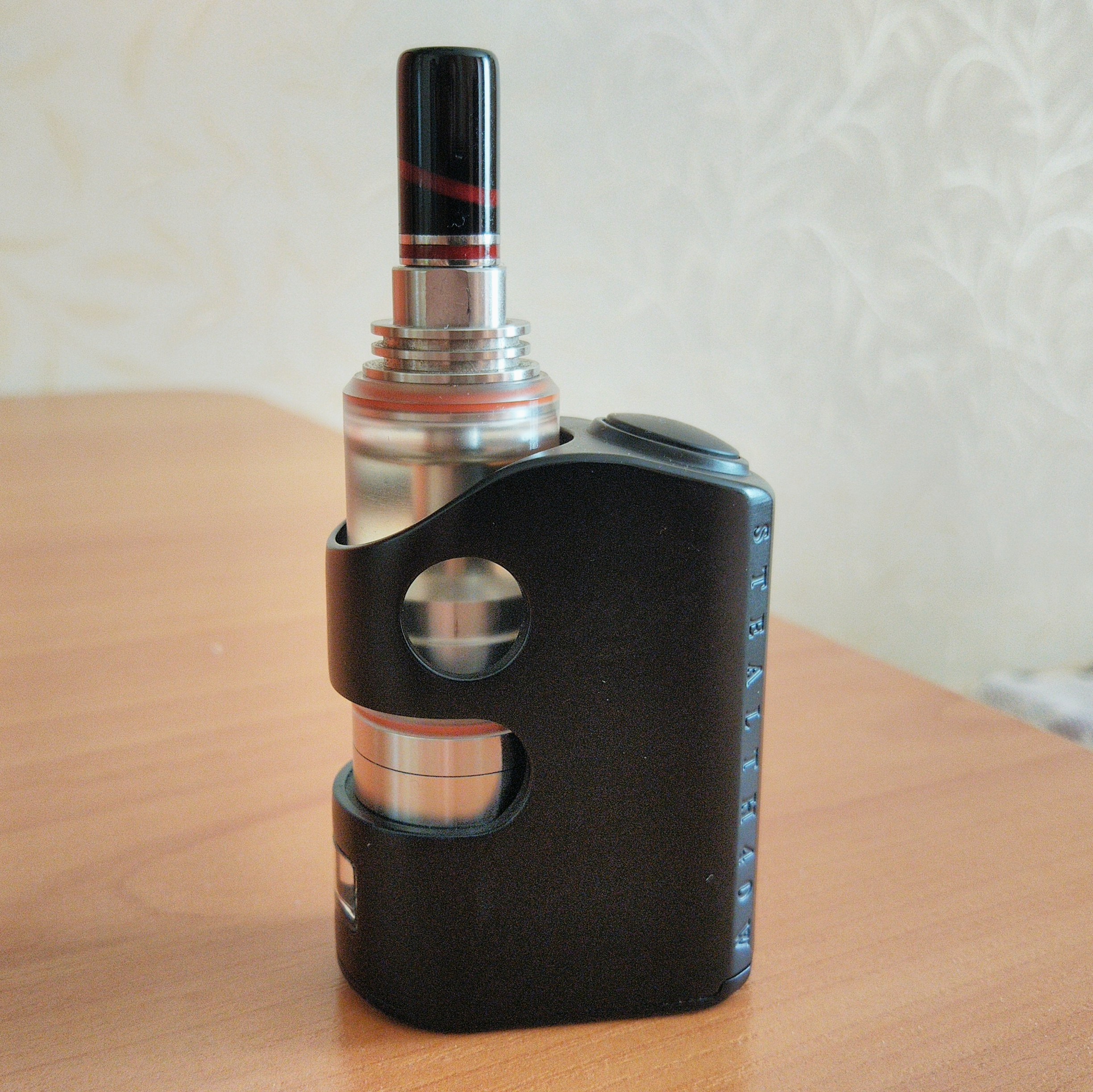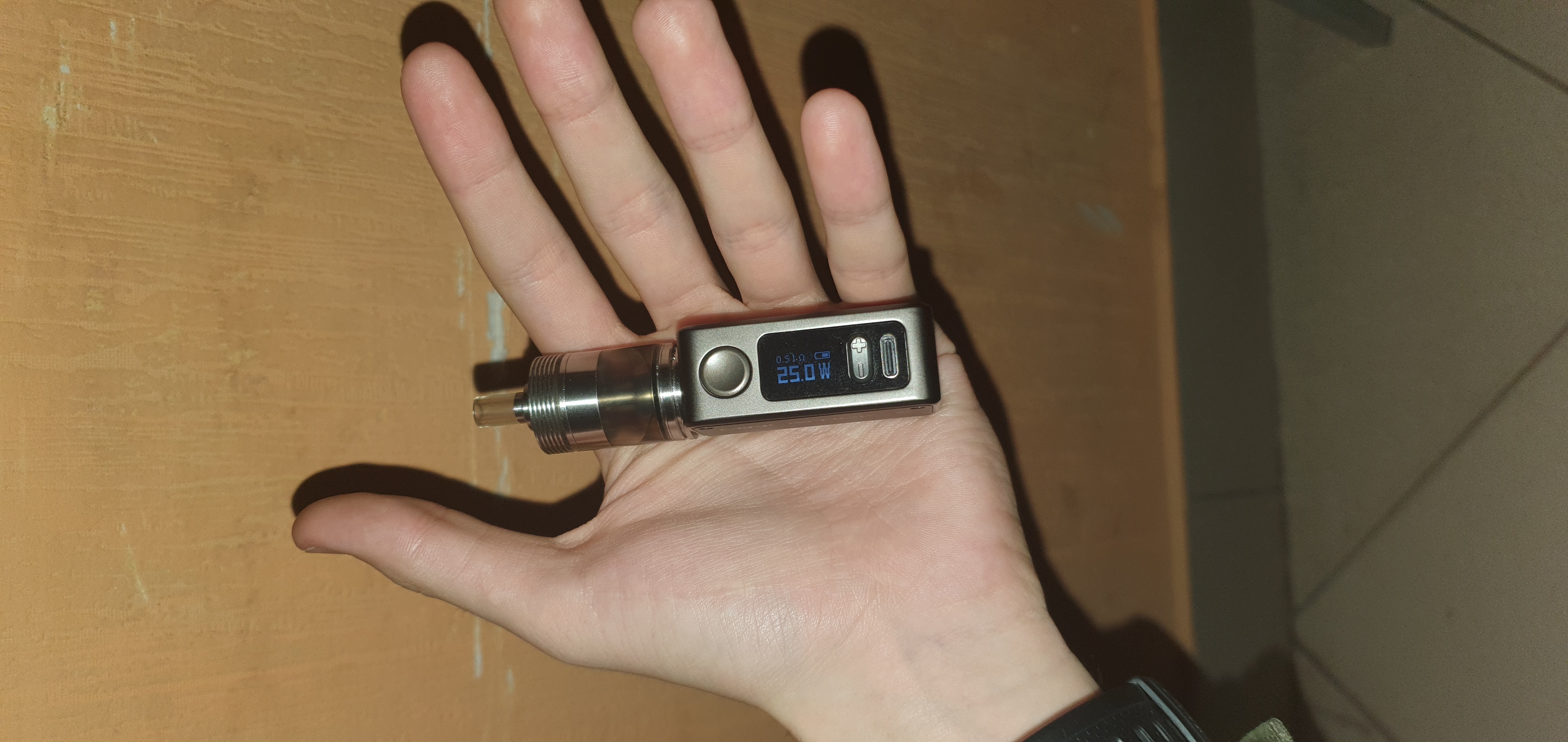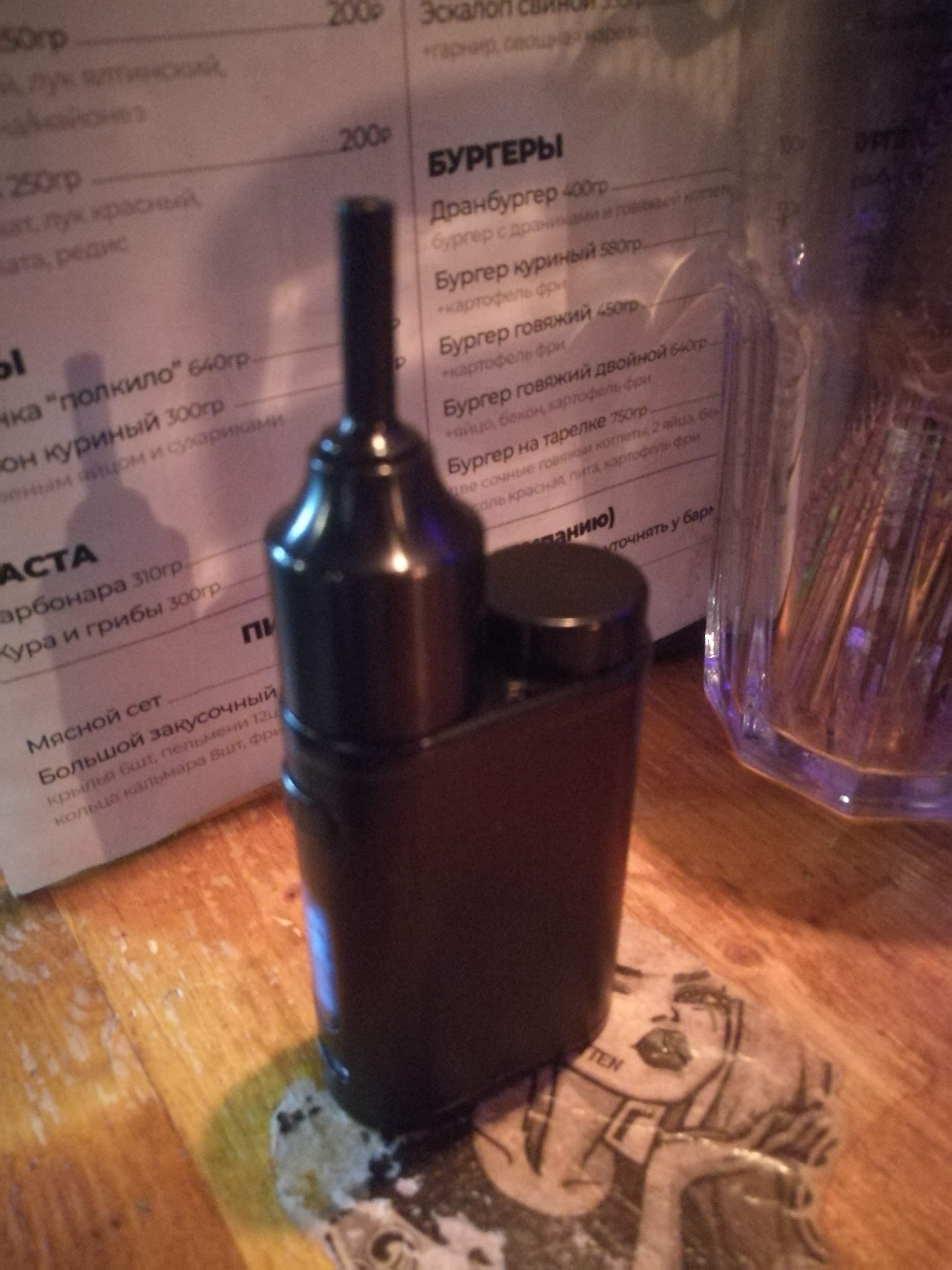 Атомайзер пиздец вкусный, но сука он сам размером с боксмод. Но как-то похуй, в руке лежит аккуратно, если зажать в ладони то торчит только дриптип.