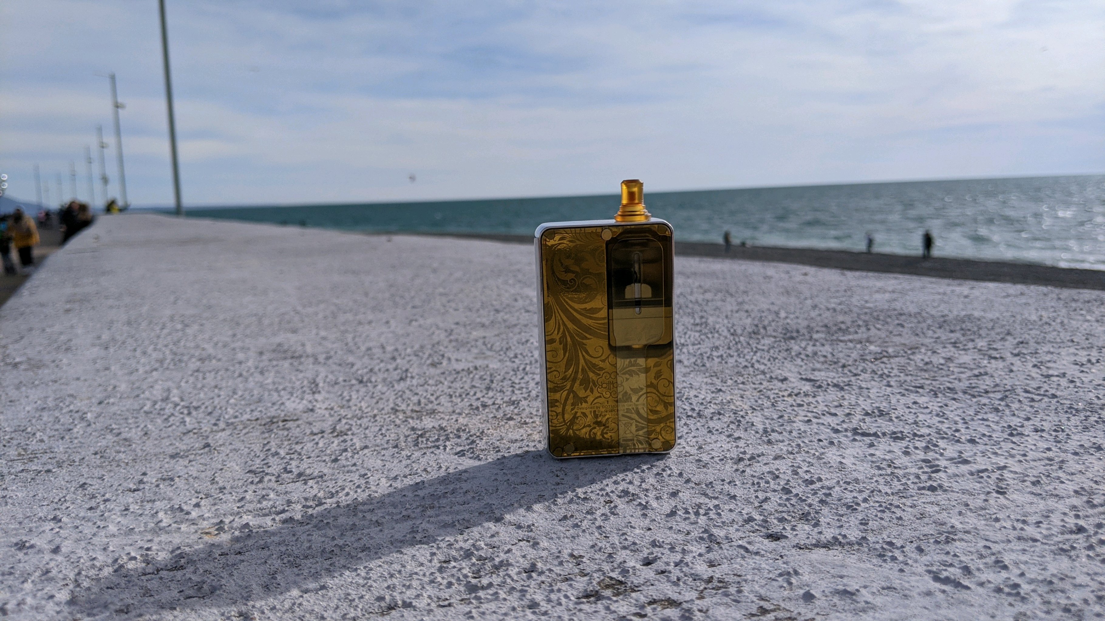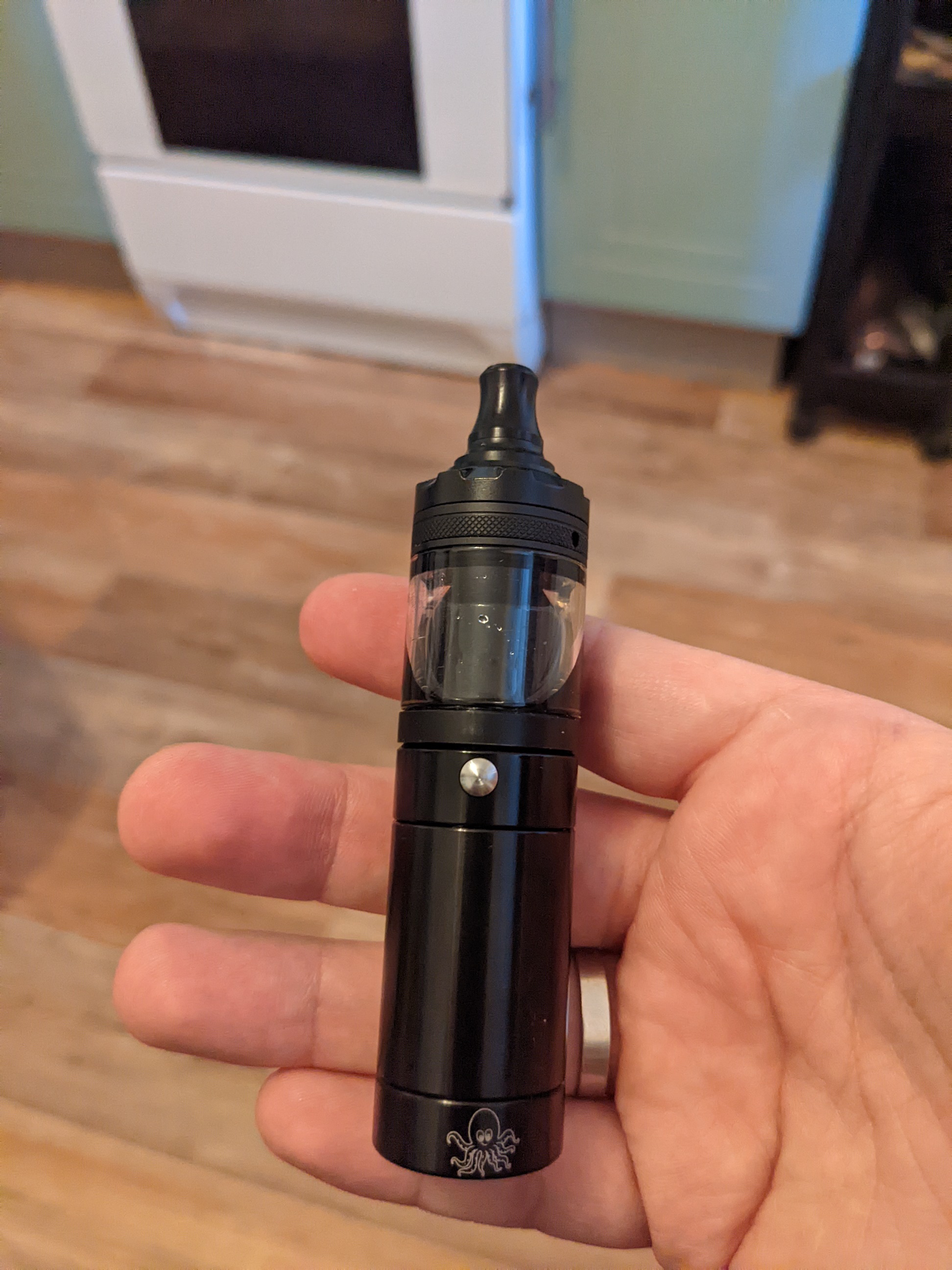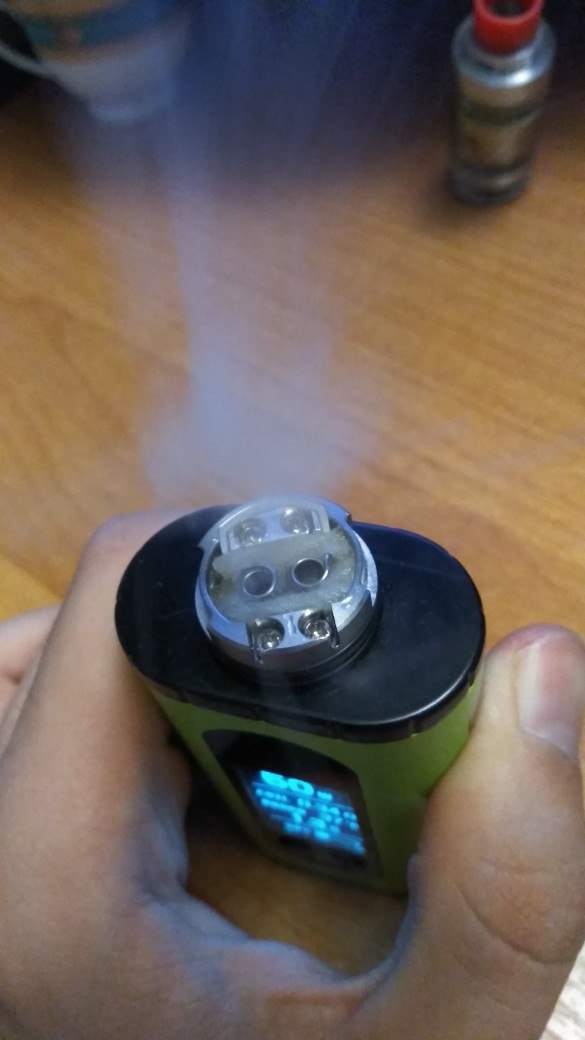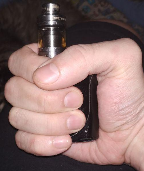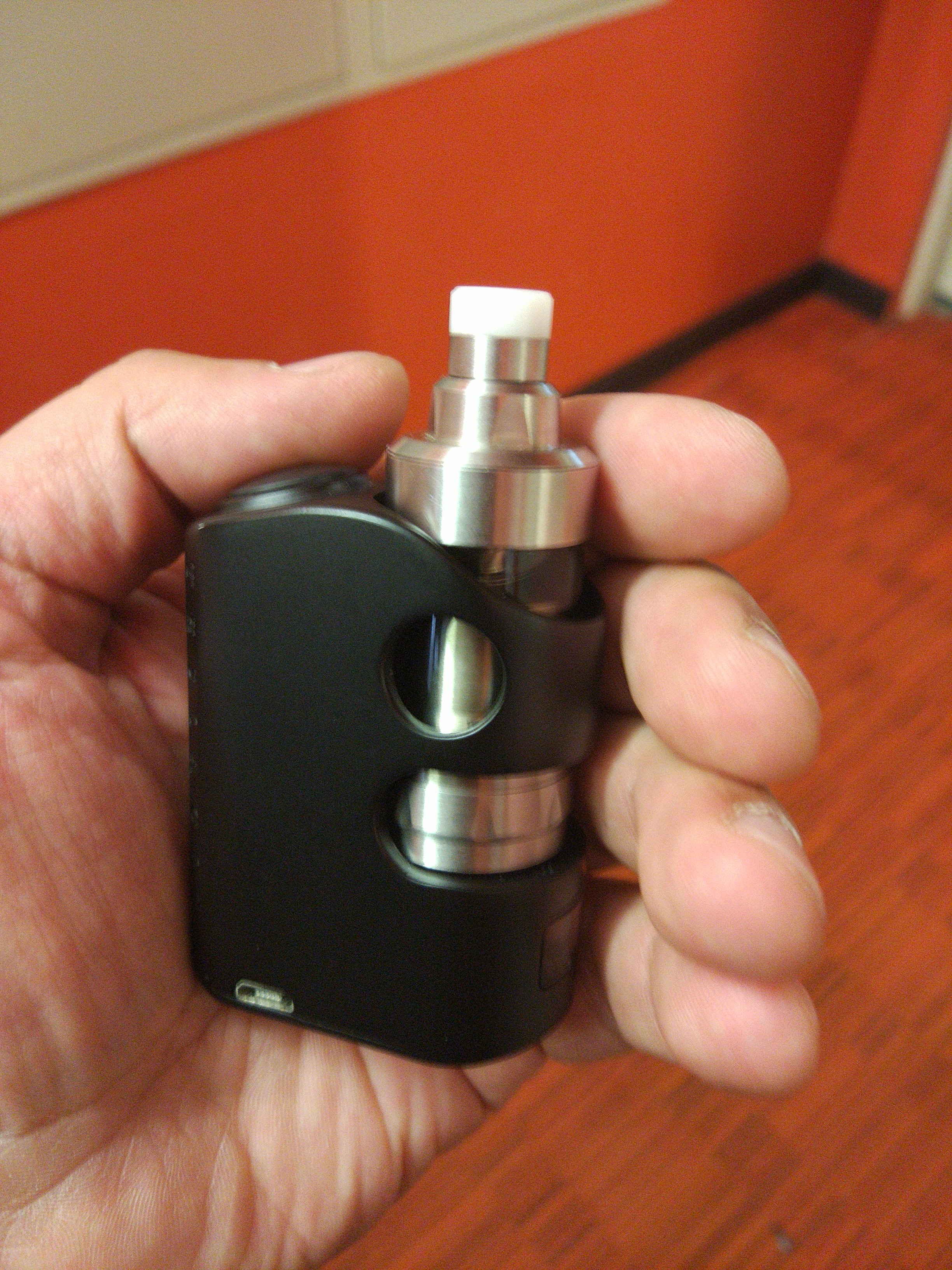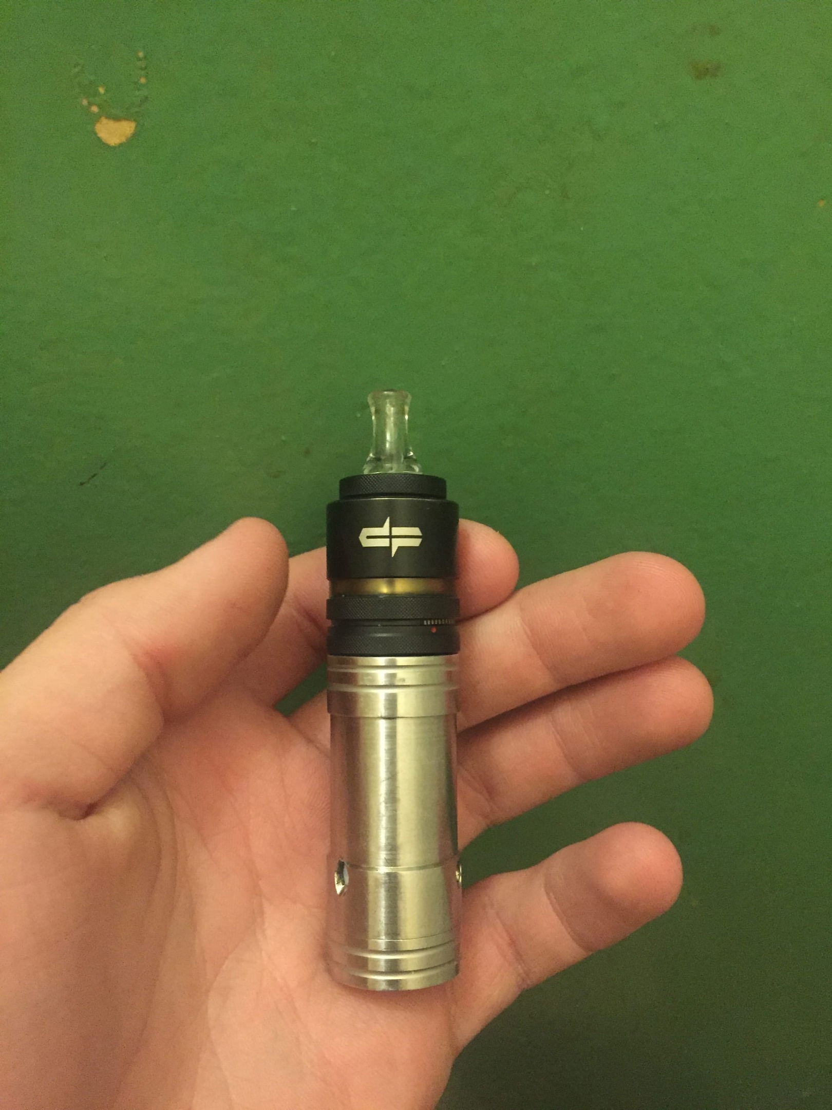 Атомайзер пиздец вкусный, но сука он сам размером с боксмод. Но как-то похуй, в руке лежит аккуратно, если зажать в ладони то торчит только дриптип.