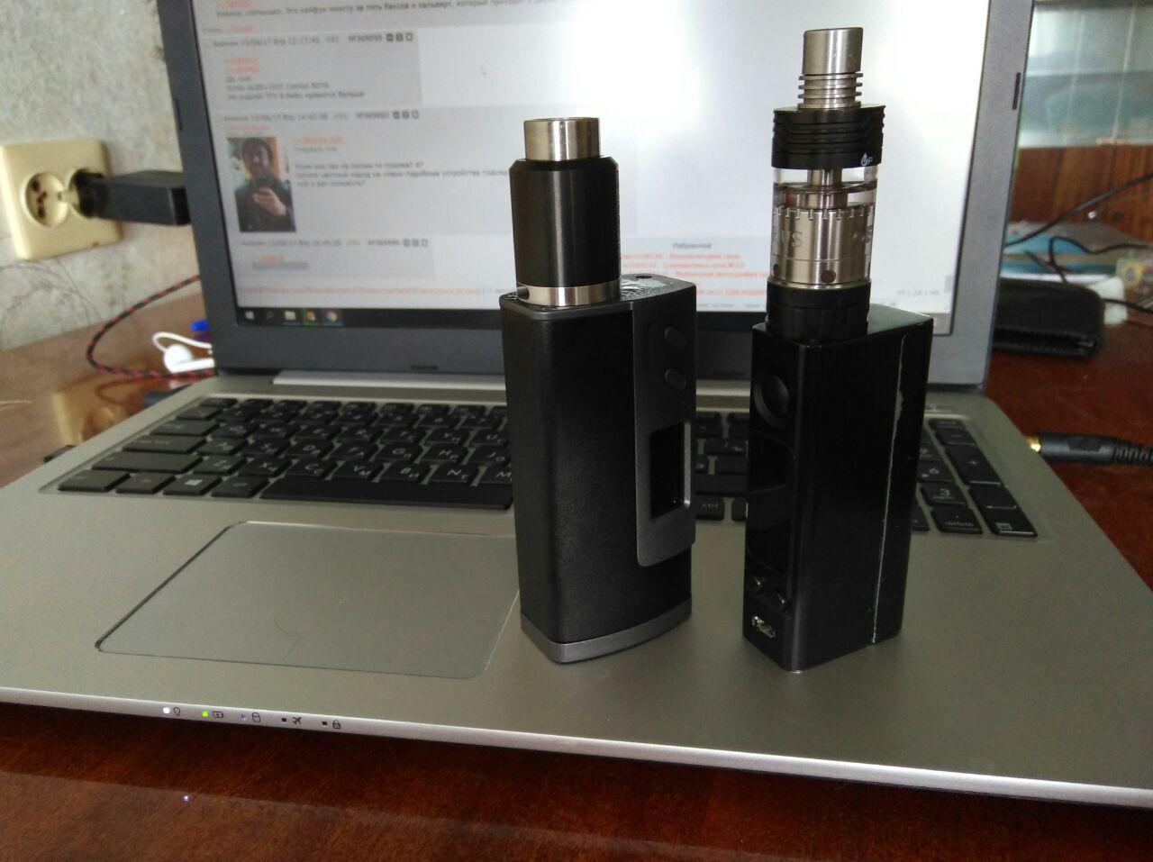 Derringer RDA с делриновым 510 дриптипом UD на Eleaf Invoke. Для сравнения Griffin AIO с делриновым 810 дриптипом UD. Скоро LowPro RDA придёт, она-то уж точно еще мельче будет. Смущает только её проприетарный дриптип с резьбой -- как же можно будет воткнуть туда эту оринговую красную 810 залупку? Нагреть и вкрутить? Есть идеи?