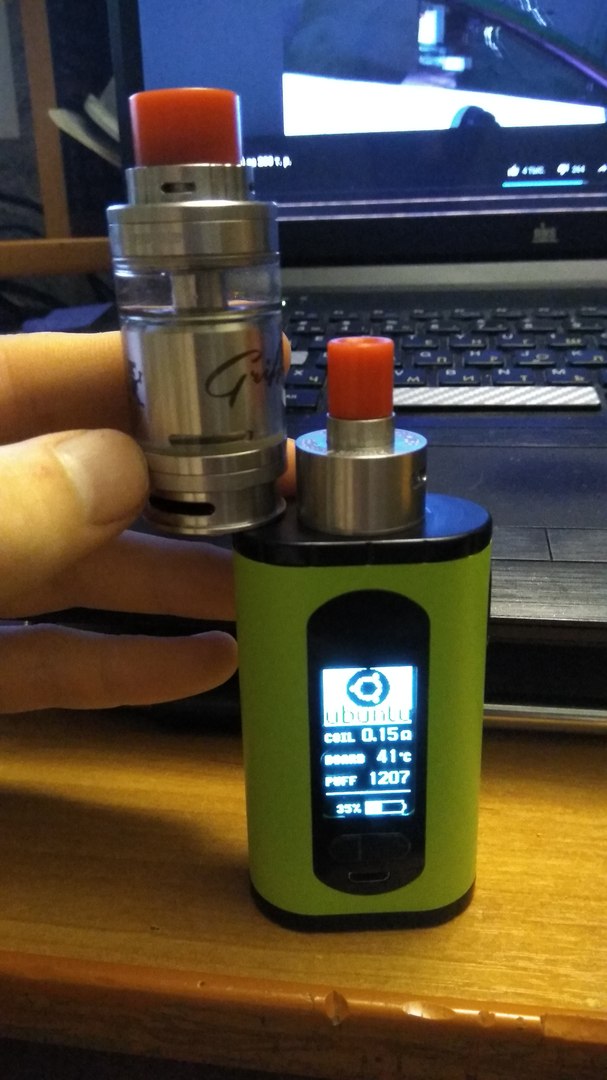 Попался на глаза в магазине joyetech eroll Mac, просто влюбился в его внешний вид. Но лять... Эта штука во первых дико плюеется жижей, во вторых испарители каждый день гореть начинают, так денег не напасешься.