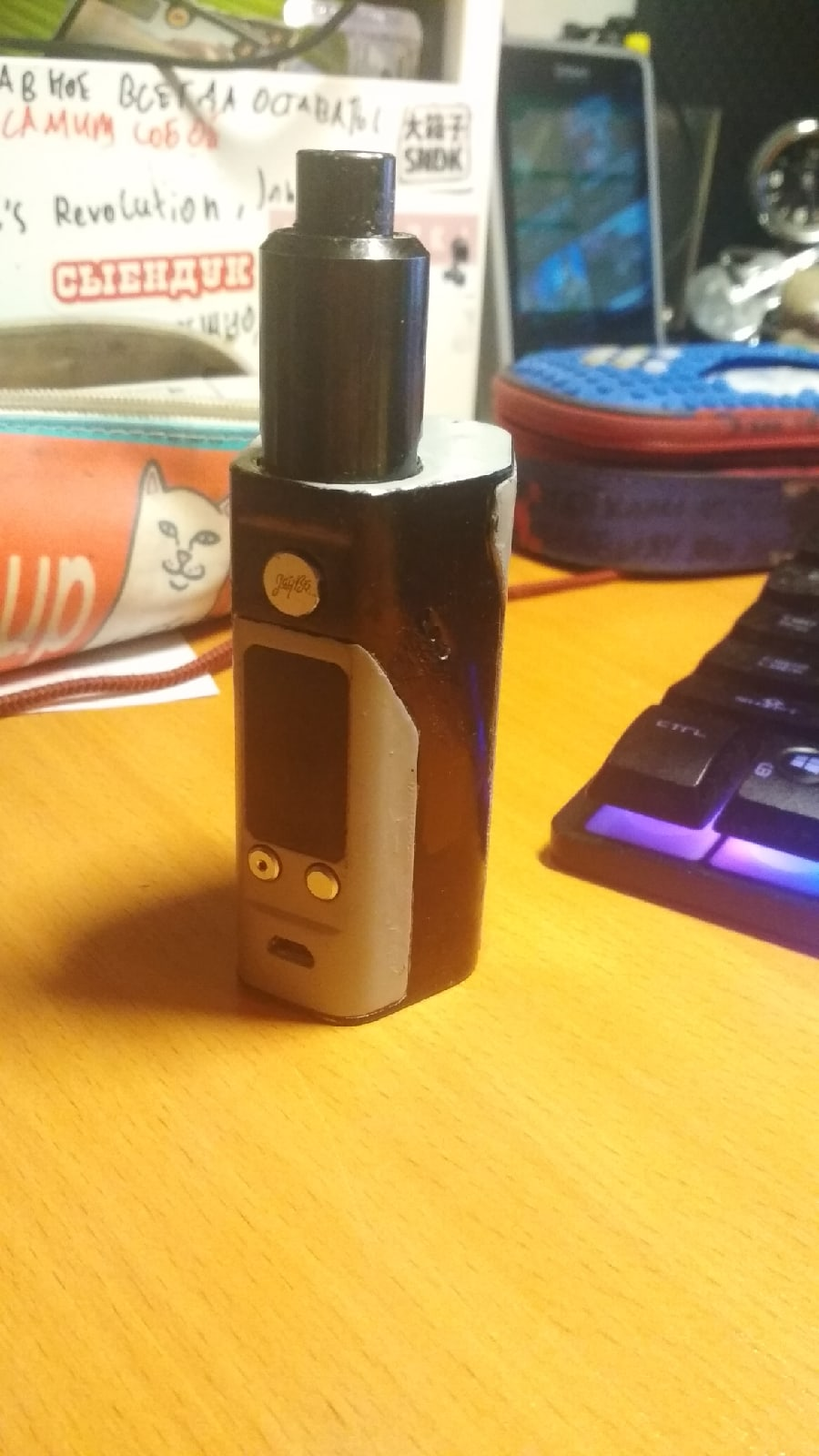 >>458339 пользуюсь вариватом, все, больше ничем не пользуюсь, мод как мод, а так он очень маркий, поцарапалась нижняя часть и дисплей, иногда кнопка срабатывает не с первого раза, сделал 9999 затяжек уже