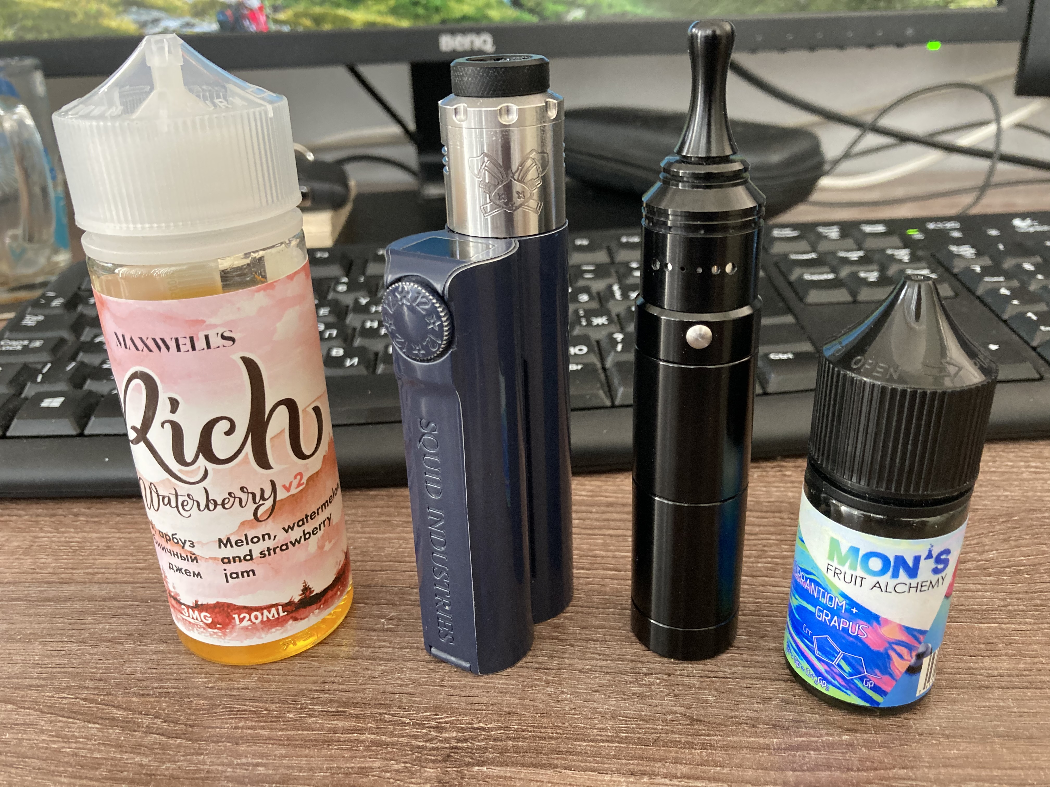 Цунами года 3, все работает исправно. Рыксе не знаю сколько, но когда я ее купил на барахолке краска была в состоянии well done, поэтому пришлось перекрасить, пока что грунтовка + черный маркер. Основа рыкса + цунами, запаска в виде меха (хз че за труба, для меня все они одинаковы) и 12 смок (был разочарован смоком, течет по кд, испарик вкус не дает, пара не так чтобы, а обслугу найти так и не смог) и 3 айджаст достался от друга. Раньше пользовался 2ой новой (лучший под имхо), но он сломался через полгода)))) неизвестно почему. Еще редчайшая бакодрипка индульгенс, была также ревенант, но продал.