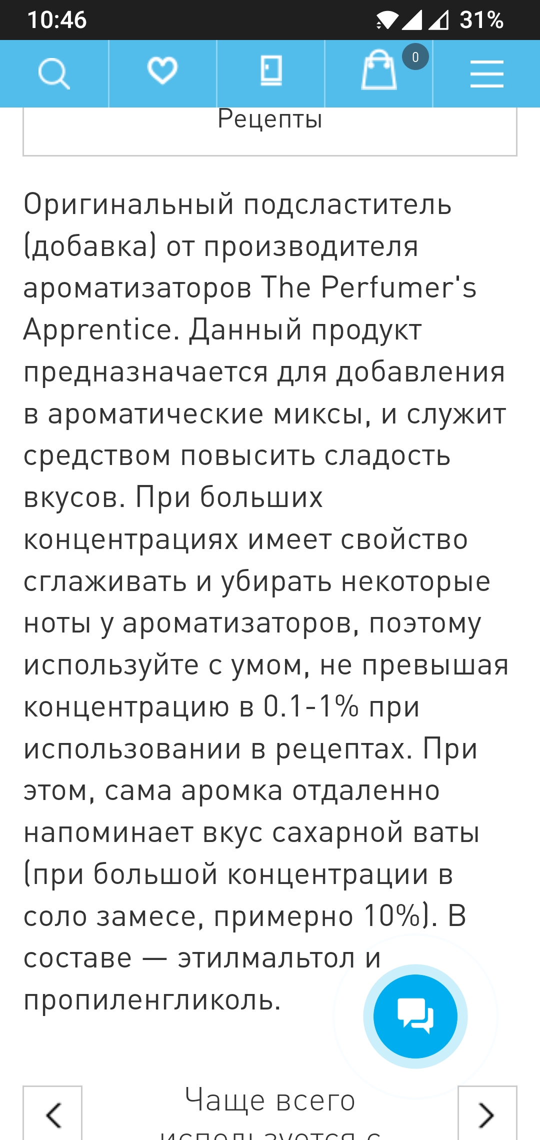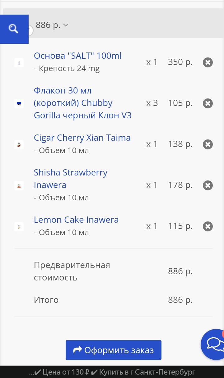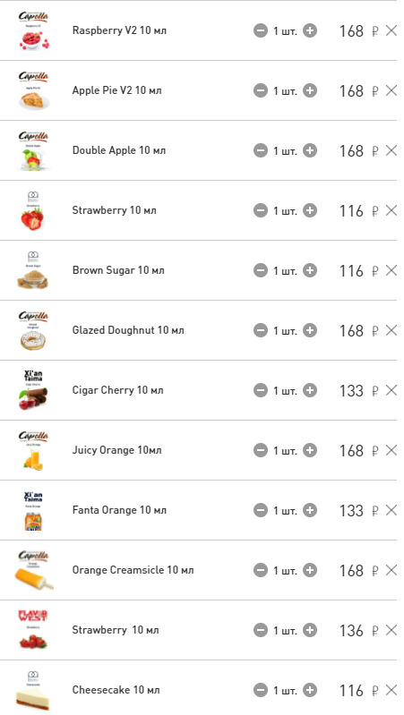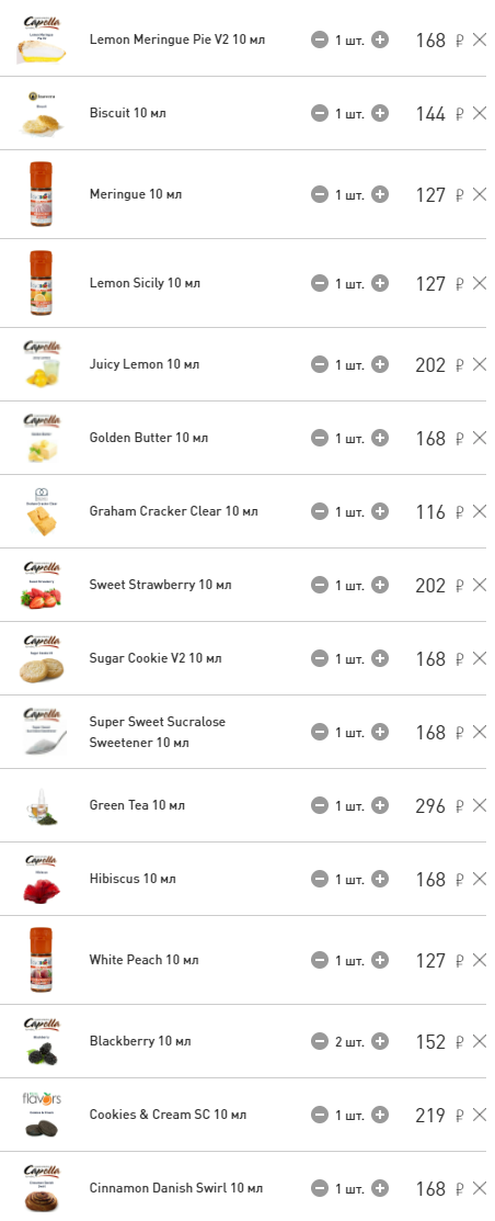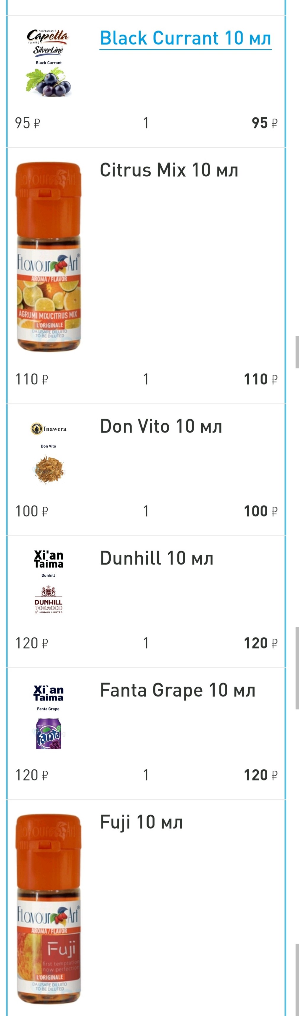 >>506785 Ещё добавлю один типс: 6. Если хотите ультра-экономии - сначала выбираете пару рецептов и только потом покупаете аромки под эти самые рецепты. У меня часто бывало что заходил на какой-нибудь шоп и просто брал всё подряд, после чего заходил на елр и становился грустным от того что рецептов то нету под мои аромки или не хватает парочку, ситуация была как у этого анона >>506589 . >>506793 На самом деле после того как заслали не то что заказывал начал задумываться о смене шопа, но никотин мне нравится их, вот хотя знакомый закупившийся со мной урчал насчет аром, что они там какое-то лютое говно, возможно он так говорил из-за их никича. Хммм, спасибо за мысли об их никиче, в следующий раз закажу в другом месте.