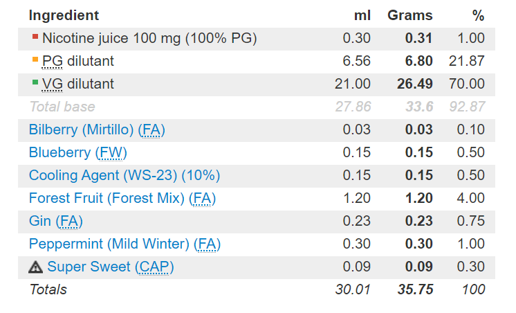 в итоге сделал 100 мл sweet blend с INW black cherry, purilum boysenberrу, и стандартный микс кулера и свитнера я у мамы нэсти джус
