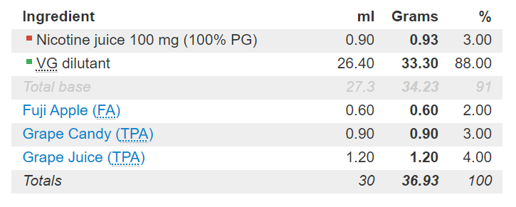 >>507084 Мои рецепты на каждый день: годный клон Шории (только без холода и подсластителя) и сочная Grape Them Apples. Последние пару лет только их и дую, лишь изредка отдыхая на других рецептах.