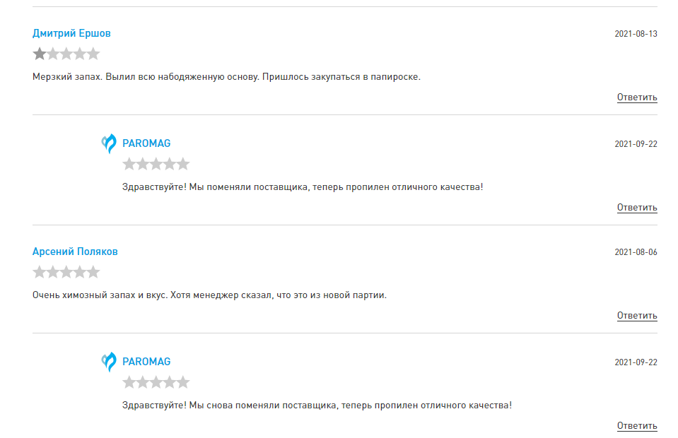 >>506785 Минус порновейпа (он же всеаромки) в хуёвом никотине, который они называют лучшим по их мнению, потому что «мягкий, не дерёт» и всё такое. Он совершенно не тхшит, но при увеличении концентрации тупо сдавливает горло, а вкусы аромок не раскрывает, а приглушает и размазывает, а сама жижа не темнеет, как обычно. Мои любимые рецепты с этим никотином совсем не такие, как были раньше, когда брал никотин на сигароне. Какой там был — хз. Да и ассортимент у них упал ещё до последних событий. А так был очень годный магаз. Замену им пока не искал, так как запасы есть, но придётся.