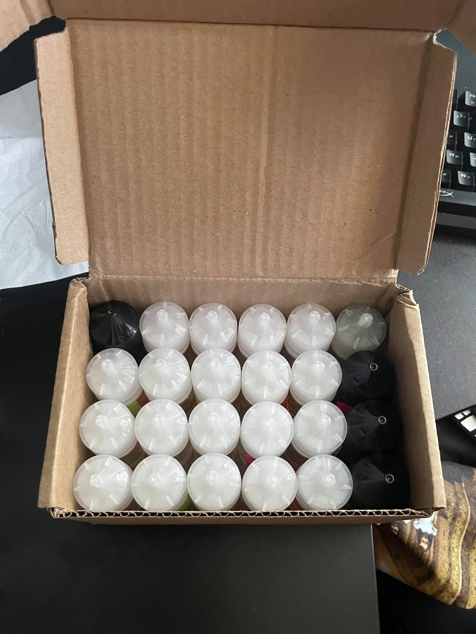 Приготовил запас жижки примерно на пару недель Впервые попробовал делать по гайду из шапки + купил аромки по совету анона >>505397 Запах охуительный, проба спустя 10 минут после замеса это подтверждает. Немного дороже получается, чем мешать тпа/капелу, но надеюсь оно того стоит. Аромки брал от t juice. Цветные только немного смущают. Спрятал в шкаф, через пару недель вернусь