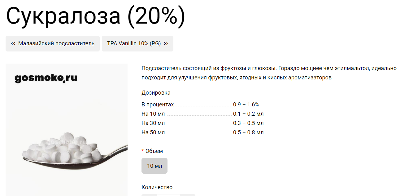 >>506556 У нас в продаже по сути два стула, суркалоза и мальтол. Субъективно для меня сукралоза не имеет привкусов зелени, а вот мальтол при больших концентрациях даёт странный привкус. Можешь попробовать их отдельно не в смешанном виде, потому что не знаю как в малазийском, а вот в обычном тпа (просто sweetener, не super) точно их смесь