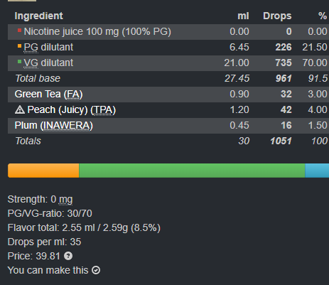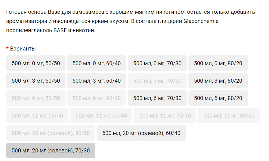 Чтобы захуячить побольше аромок и всяких добавок лучше взять 70/30 и аромками добить до 50/50? То есть надо будет в 30мл долить 9мл ПГ-компонентов. Или все-таки достаточно будет 60/40?