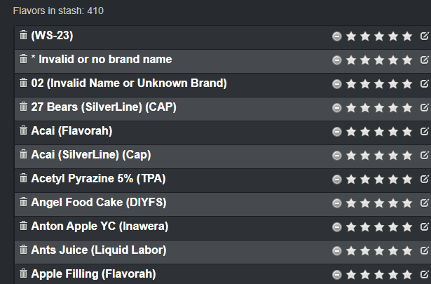 Ну пиздец накупил говна, теперь надо думать чо мешать. Итого 75 аромок, а по готовым нормальным рецептам могу мешать только Атмос император и Mother's Unicorn Milk Чому кстати так мало рецептов на FLV?