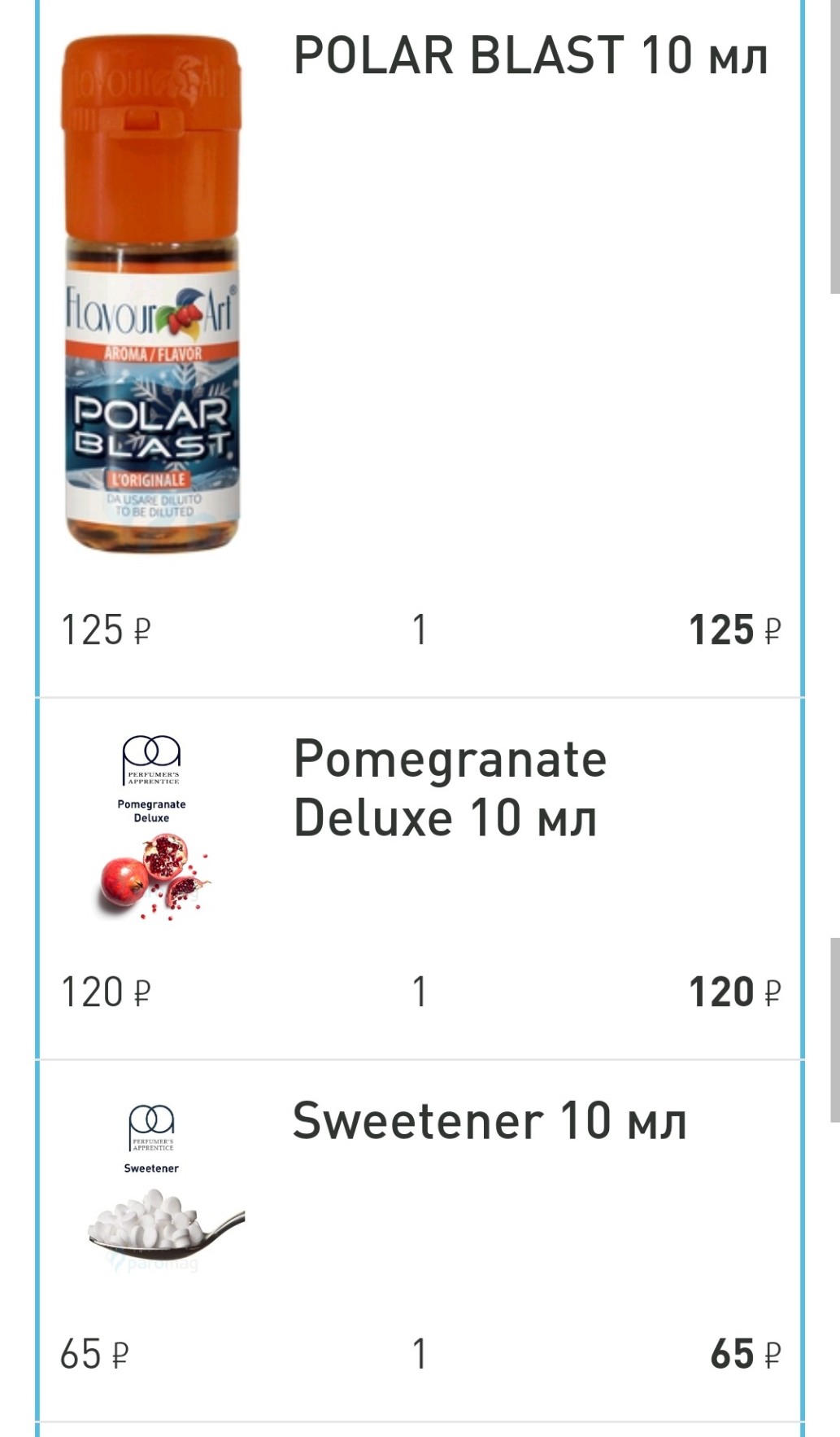 Первый в жизни закуп. Анальные рецепты из 25 компонентов не влекут, хочу парить в соло с добавлением коттонкэнди/саурвизарда при необходимости. Девайс мтл, планируемая крепость - тройка.