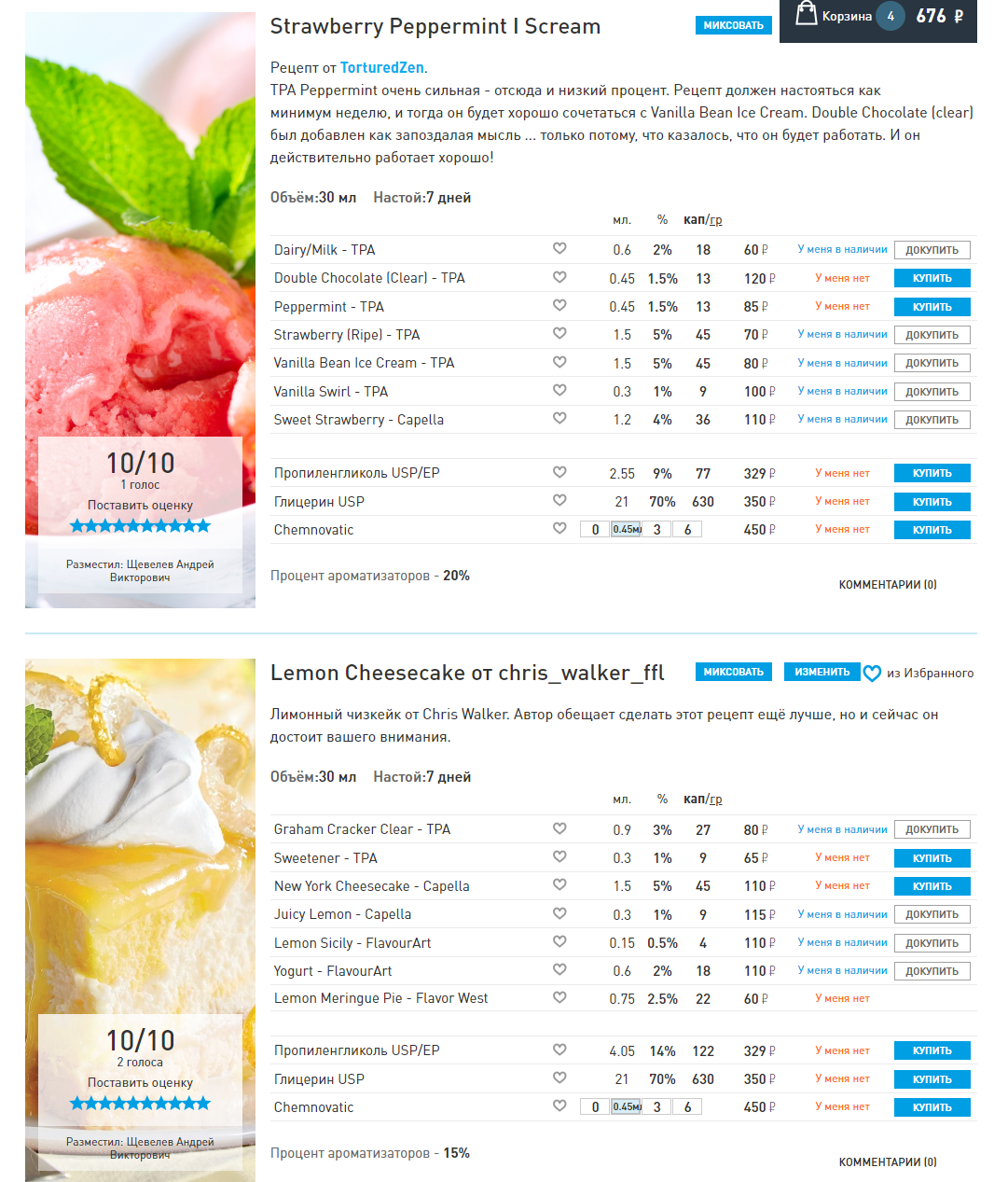 >Просто заходишь в паромаг Зашел туды, отсортировал рецепты по рейтингу, прикольный у них калькулятор, даже стоимость рецепта показывает по ихним расценкам. Только смущает, что комменты к рецептам там 5-летней давности, когда все ходили с айджастами или даже махмудами и херачили многопара на 100 ваттах. На подике с сеточным испариком 15-18 ватт это как вообще парится будет? Боюсь, что недоаром словлю и опять разочаруюсь в этом вашем самозамесе)