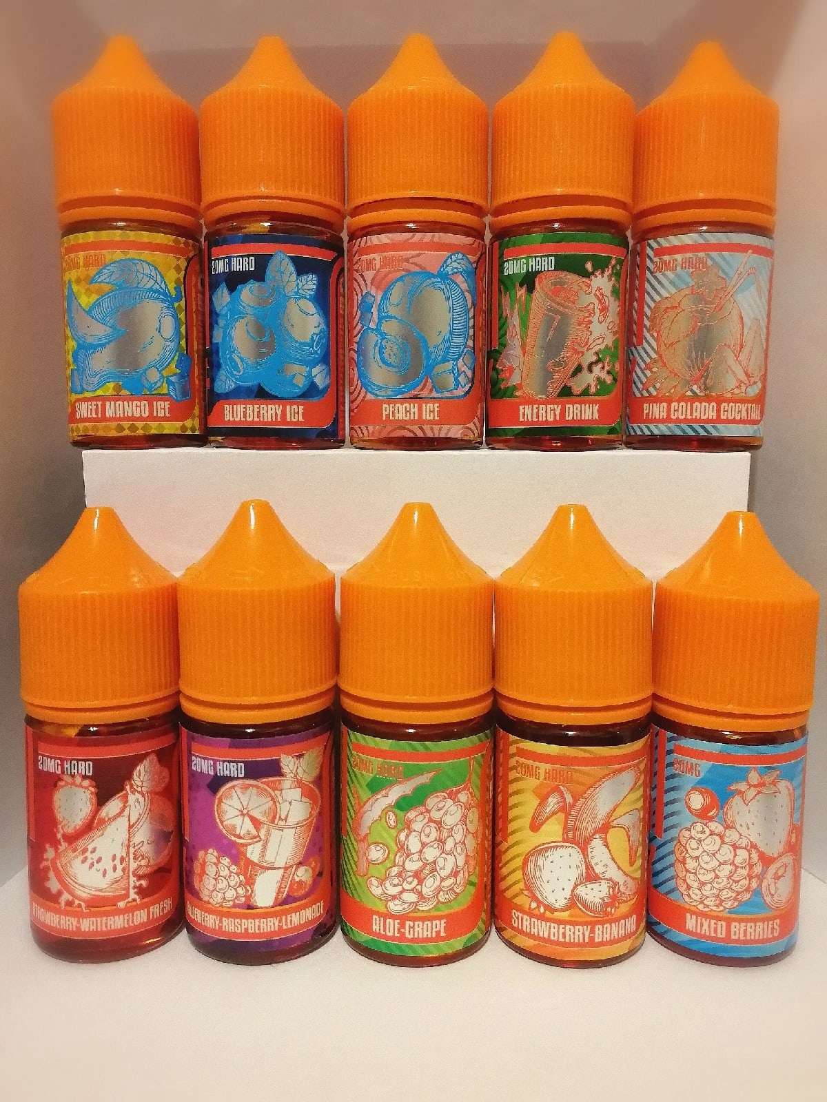 Взял генетику от гличей, единственное что было в локальном зенмоде с 12 никотина под под. Манго-банан - свежее манго, а банан как в шоколаде несквик с бананом. Кола-виноград напомнило банку какой-то виноградной газировки, которую я как-то по ошибке, пиздюком, взял вместо колы. Вкуса колы не ощутил.