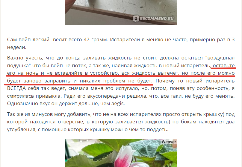 >>518302 >только 1 картридж такой попався Какой такой? Тёк при первой заправке? 0,6 Ом именно? Картриджи все 3 на 0,6 Ом у меня больше не ссутся, это было при первой заправке. А потом я прочитал отзыв на iRecomend вот этой милфы кубаноидной (пик 1), там правда про картриджи первого поколения, но она вообще пишет, первая заправка вытечет и норм, типо, потом не текут, лол. А партия из трех 0,8 вообще не имеет каких-либо недоразумений. >Заказал себе вторую такую же хлим2 кстати просто на всякий случай вдруг потеряю или разьебу Ты сделал меня задуматься. Под не единственный, но остальные легко в ближайшем гей-шопе купить можно. Да хотя и этот ждать не долго, есличо.