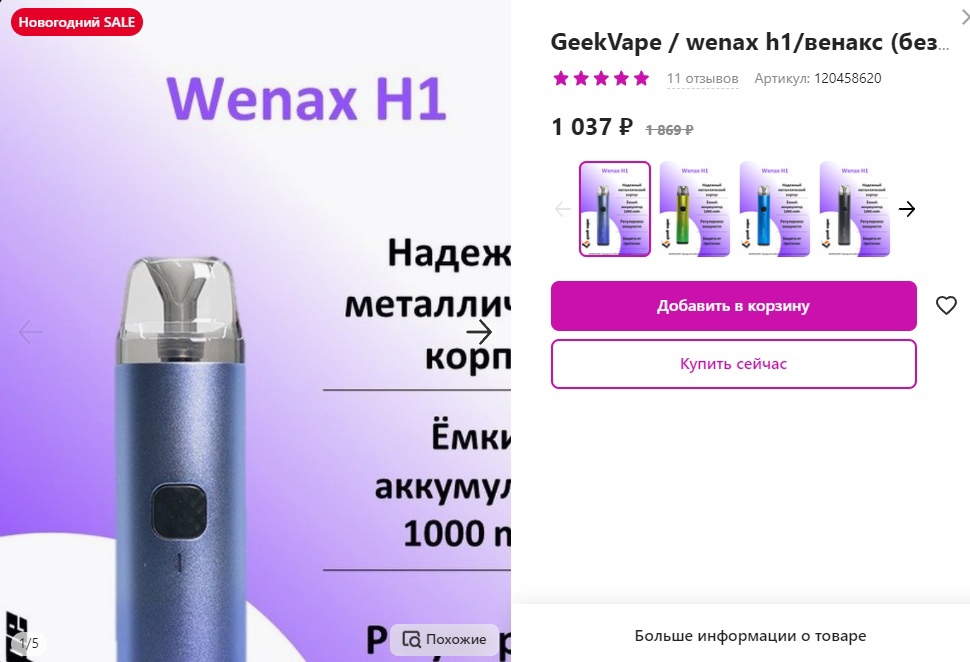 Заказал wenax h1 за 1030 на вб. Дешевле миникала лол. Даже дешевле чем у всратых венаксов типа К1 SE. Обосрався с ценовой политики гиквейпов. С их продавца брал.