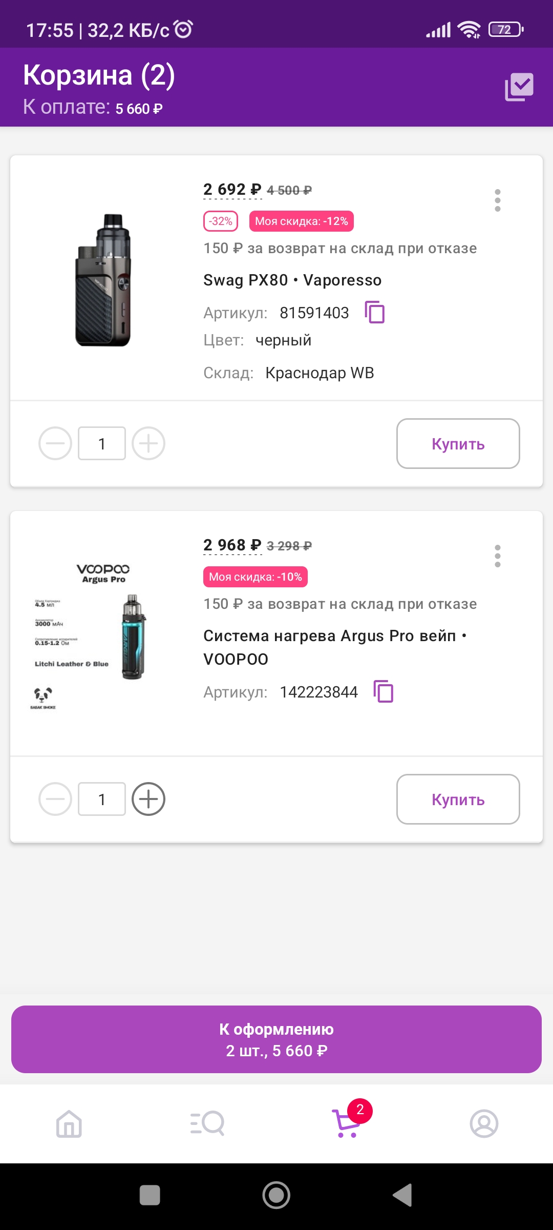 Аноны подскажите плез, захотел снова купить себе пароварку, года 3 назад был у меня смоковский мод, где я сам менял ваты. Почитав тред мне понравился внешне и по цене Vaporesso Swag PX80, но как я вижу ему надо покупать картриджы, самому вату я так понял не поменять. Меня в принципе такой варик устраивает, но только смотря на сколько хватает такого картриджа, если на день-два, то наверное такое себе, особо не напасешься их. Собственно у кого есть опыт поделитесь плез, на сколько вам хватает и какая у вас активность парения?