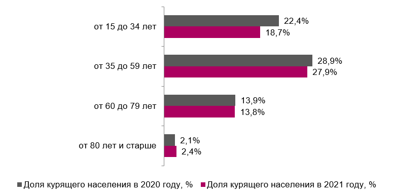 >>527630 Забыл добавить, почему ацент на возрасте: средний в РФ - 42, и тех кто старше, больше, чем тех, кто младше этой отметки, т.е. огромная аудитория затрагивается, т.к. эти люди 100% в молодости (перестройка/90-е) курили.