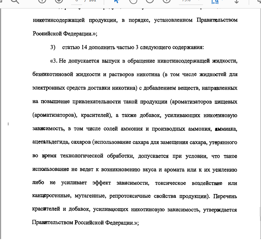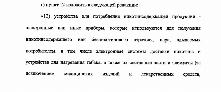 >>525889 https://sozd.duma.gov.ru/bill/332229-8 Вот здесь читал. Первый PDF файл с названием "248633697-248634524.pdf" 5 страница снизу. Апрельский законопроект, где все изменения дополняются строчкой "использованием устройств для потребления никотинсодержащей продукции".