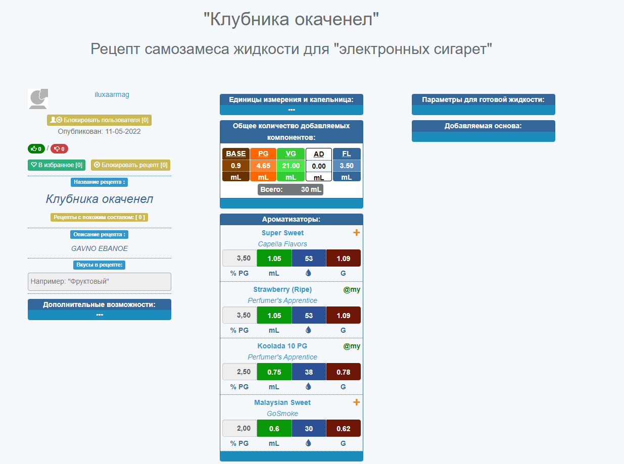 Анон создал сайт, где вы можете ставить оценку жидкостям, оставлять и читать отзывы. Пока что в процессе разработки.