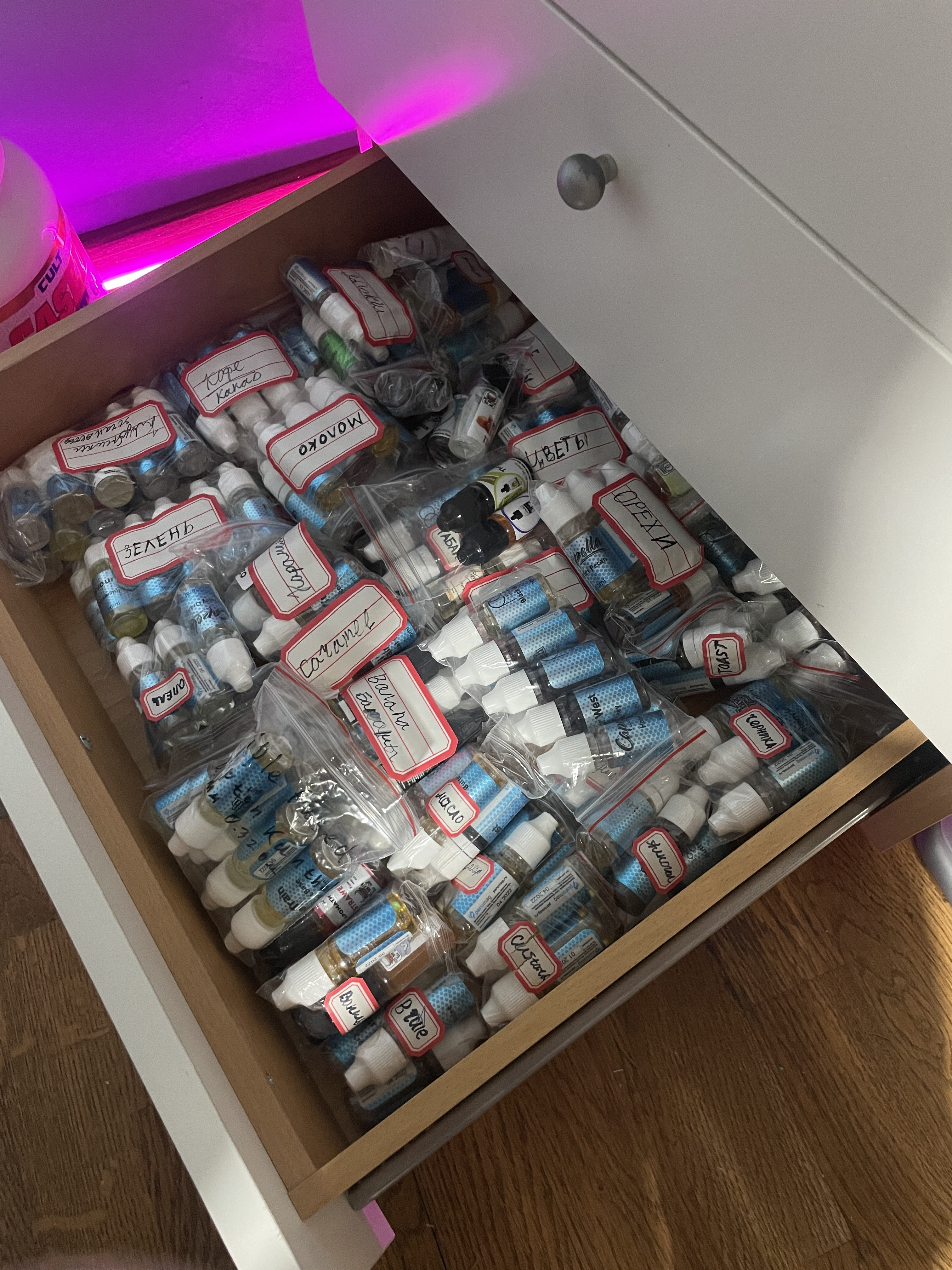 >>523107 У меня два рецепта Mother's Unicorn Milk, семьдесят пять миллилитров клубники ТПА, 5 бутылок ETHYL MALTOL или усилителя вкуса, магнитная мешалка, наполовину наполненная SUPER SWEETENER, и целое море разноцветных фруктовых ароматизаторов, а так же литр пропиленгликоля, литр глицерина, ящик «Сотки», пинта чистого солевого никотина, и 12 пузырьков по 120мл. Не то, чтобы всё это было категорически необходимо в поездке, но если уж начал собирать коллекцию, то к делу надо подходить серьёзно.
