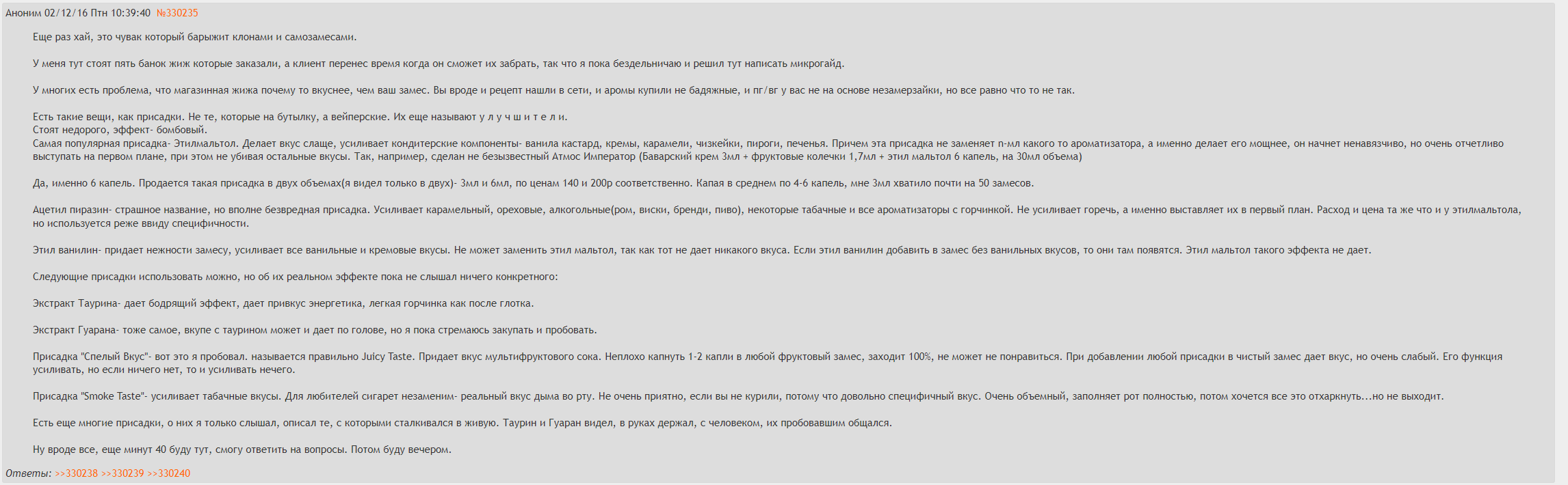 бампану дохлый тред рандомной инфой для тех кому нравятся плотные густые низкочастотные жареные вкусы без ебаной клубники и холодка