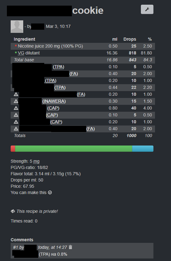 Покупаю основу 1,5мг vg70/30pg. Беру 50-60 мл основы. Заливаю туда 10мл TPA бублегум. Разогреваю горячей водой, очень долго (час-два) и сильно трясу, жду. ??? А вкус-то где, ёбана? День жду, два жду, три жду, там хуй, на вкус ничего нет, парю безвкусную основу. ТПА это наёбка для гоев? Третий раз такое уже.