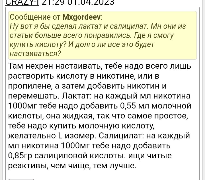 Пасаны, а сработает темка если взять в магазе готовую щелочь трешку 120мл и добустить солью? Кто нибудь пробовал, брат жив? Цель не покупать дорогодолларовые солевые жижки. Отпишитесь. На то что будет миксед ник - похую с прибором