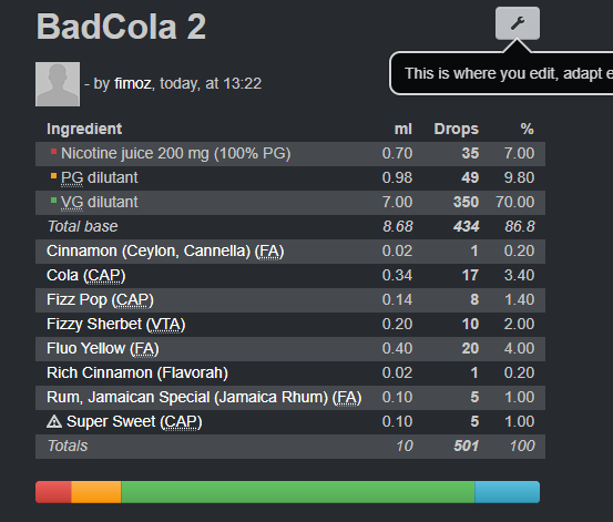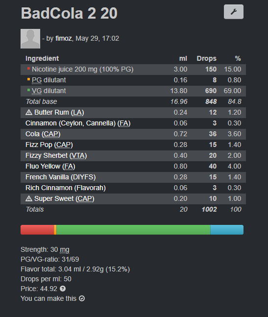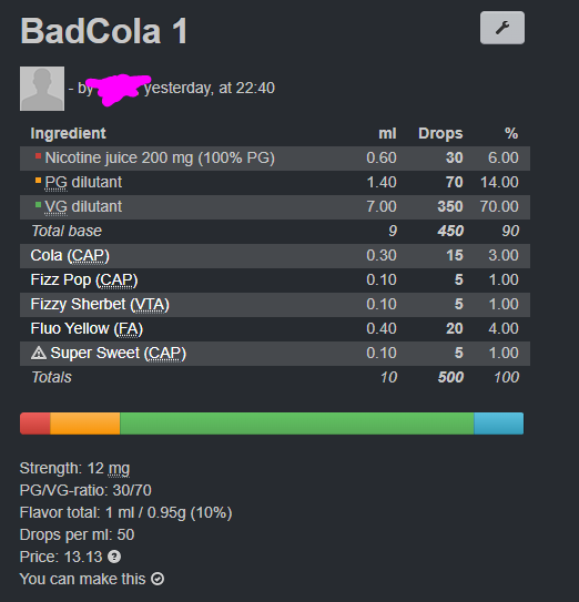 Вопрос в том, это вообще правильно? С точки зрения цифр все сходится, но одно дело мешать чистый глицерин и пропиленгликоль и сверху ароматизатор, а другое разбавлять уже готовую основу.