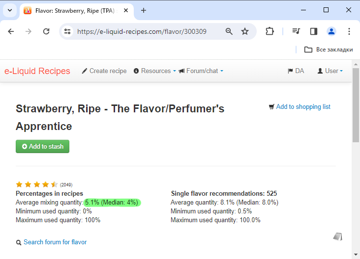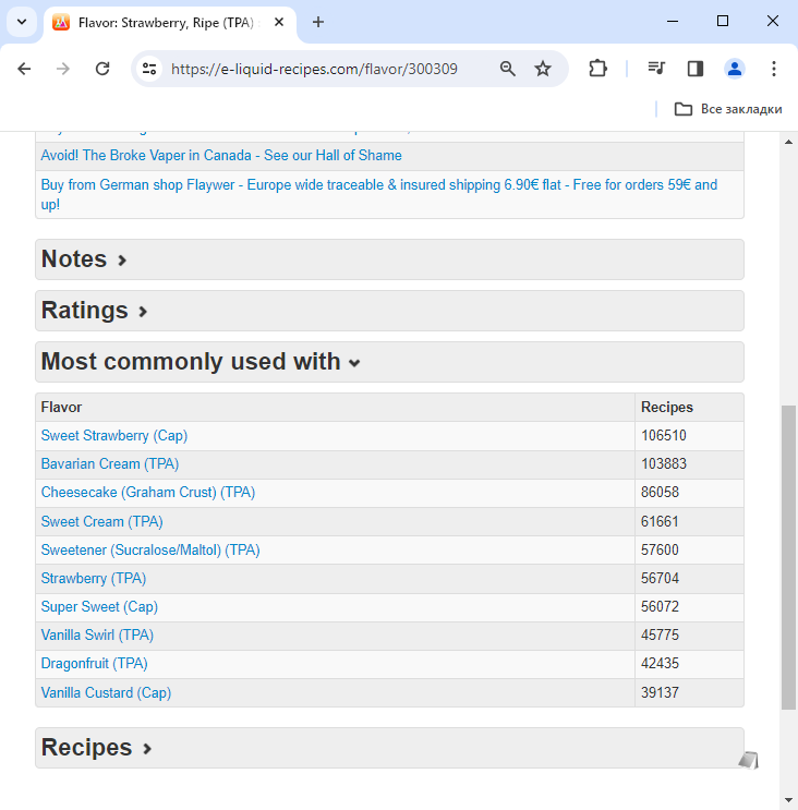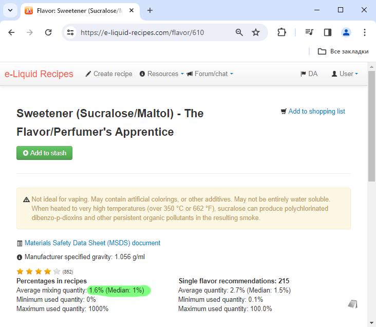 следуй процентам, которые даёт производитель аромы на сайте, либо https://e-liquid-recipes.com/ , либо магазин в котором берёшь. пикрил 1 с ELR, левая колонка это процент в миксах, правая это для соло вкуса. по моему опыту, это близкие к сермяжной правде проценты. при слишком больших % многие аромки перегружают обонятельные рецепторы и аромат "глохнет", носопырка перестаёт воспринимать аромку. поэтому льёшь выясненный процент аромки, затем льёшь процент подсластителя (концентрация тоже зависит от бренда пикрил 2), размешиваешь и пробуешь. чаще всего из одной аромки и подсластителя ничего выдающегося не выйдет. поэтому, если цель сделать тупо сочную клубнику - смотришь пикрил 3, берешь клубнику ЕЩЁ одного другого производителя, или клубничный джем, или что-то сочное и околоклубничное и сочетающееся, например КАКТУС или ДРАГОНФРУТ, и добавляешь её в микс согласно выясненному среднему проценту. и есть шанс, что химики-флейвористы аромок другого производителя создавали свою "клубнику" или другой сочный фрукт из немного других хим.компонентов, и две аромки в миксе сойдутся в более полную объёмную картину аромата. а подсластитель даст сладость на языке. а подкислитель в очень маленьком количестве (не пробовал, не мешаю фрукты) даст кислинку. вот приблизительно так надо действовать. а добавлять ещё и ещё % TPA клубники в тот же микс, потому что "не чувствуешь вкус" - это путь в никуда. в тот момент, когда ты превысишь определённый процент аромки (у каждой аромки он свой, индивидуальный, равно как и у каждого носа), ты просто перестанешь её осязать и желаемого "вкуса" так и не появится. а ещё аромки клубники некоторые люди не чувствуют, например я очень слабо ощущаю ту же TPA Strawberry Ripe.
