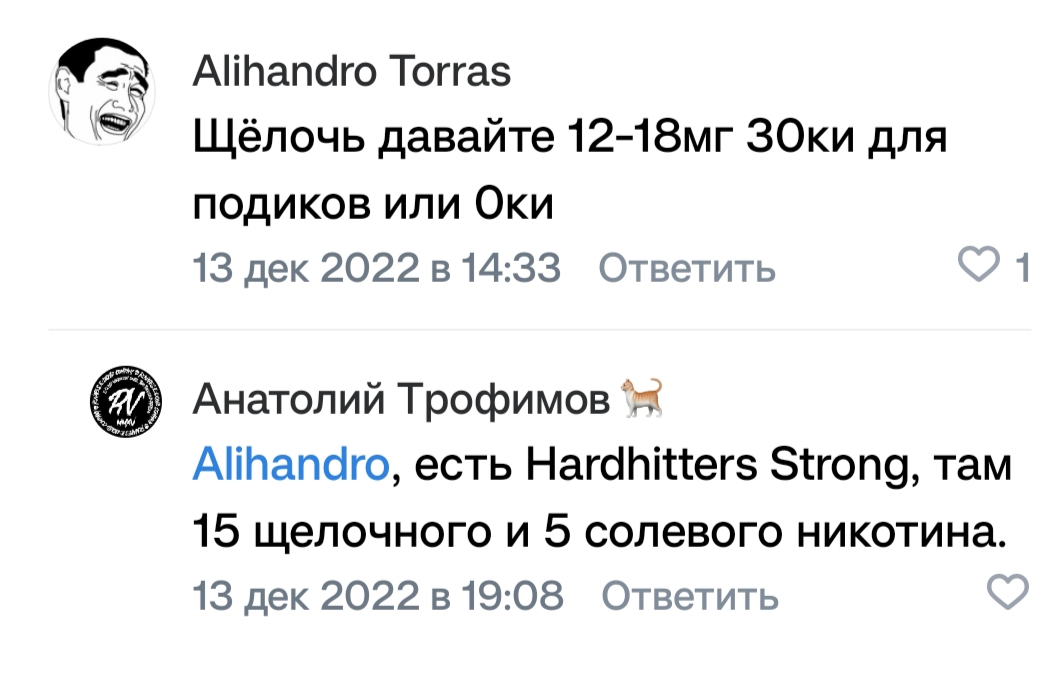 Петушки-петуханчики, на тупые вопросы от тупого меня ответить не хотите-ли? Я недавно слез с сиг на соль и хочу перейти на фрибазу, но, бля, чому все жижы только 3мг? Где 6, 12, что за ебень? Алсо, нормально-ли на подах парить щёлочь? Допустим, есть xros3 и если туда 70/30 щёлочь залить, вкус вообще будет? Не хочу отдельный девайс заводить.