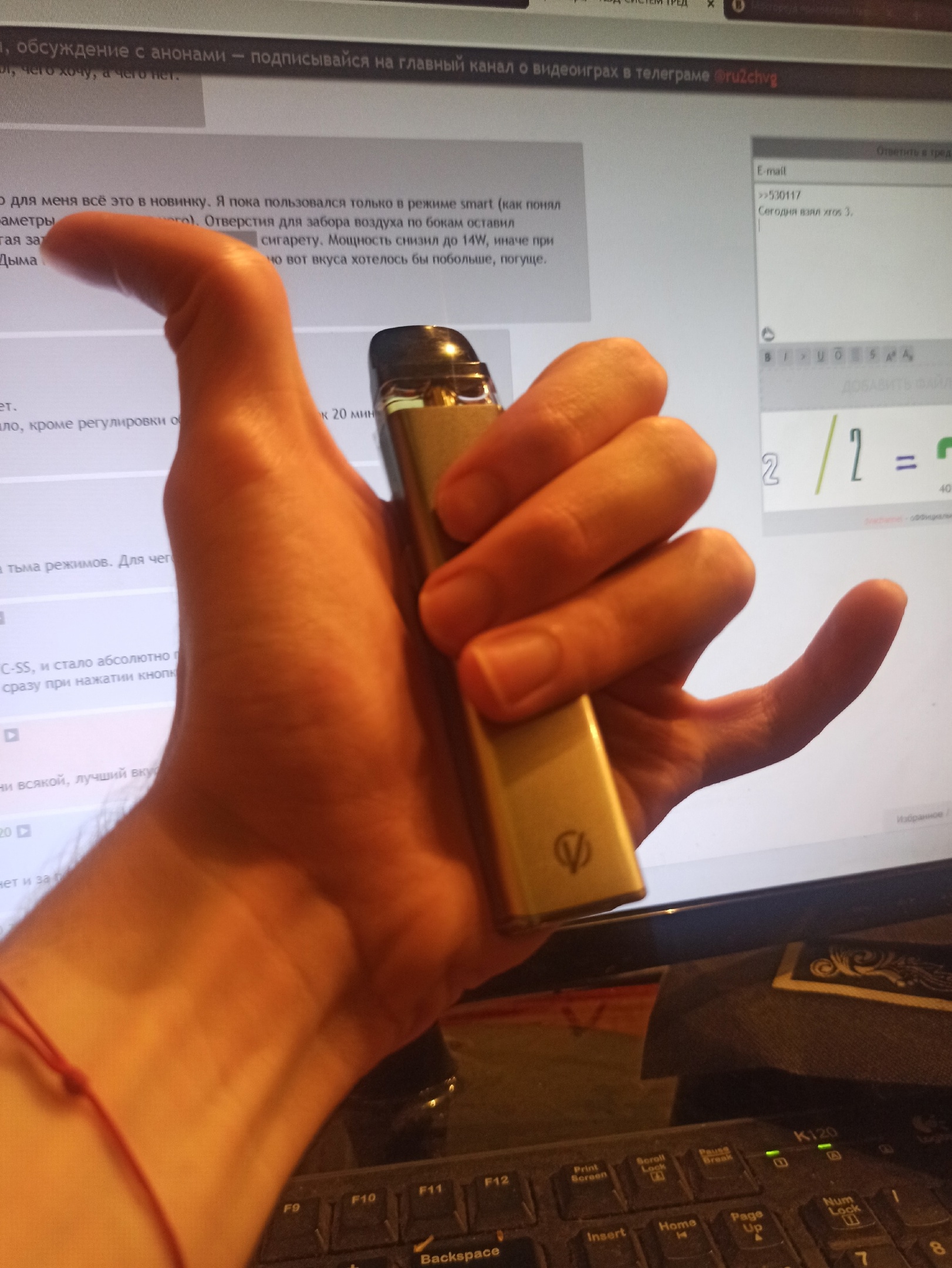 Ну шо, срабелиско-даун в треде. Не покупайте эту хуету. Течёт, лёжа на боку. Сообразительный анон скажет, что нехуй его класть набок, но я отвечу, что в кармане ему похуй на твоё мнение, и он сам падает на бок. Это, блять, реально девайс для ОКРщиков - так не делай, эдак не клади, в кармане поправляй постоянно. Ей-богу, лучше б купил какую-нибудь сосалку типа третьего хроса, и тратил тонны денег на дохнущие раз в две недели карики, чем это всё.