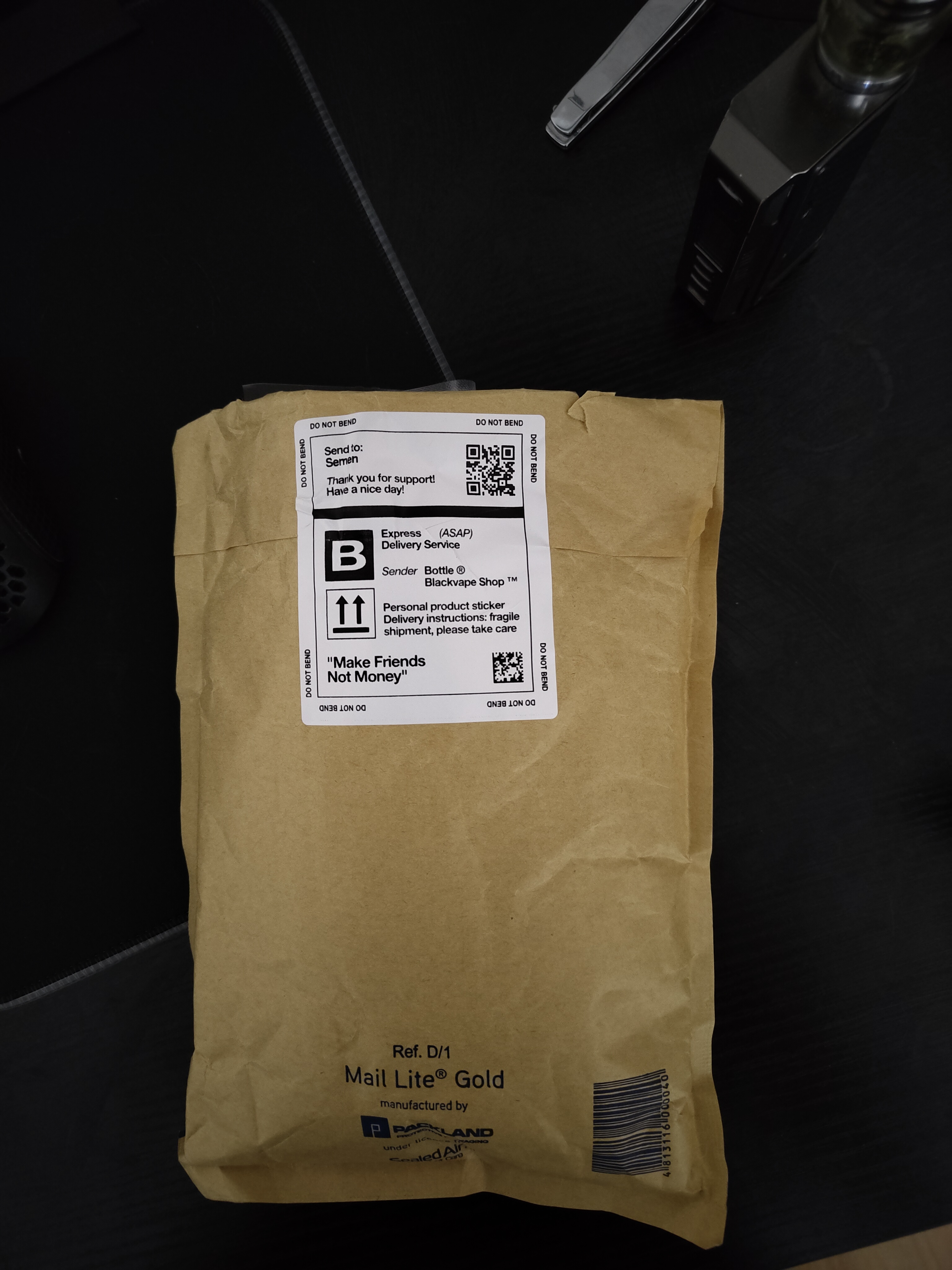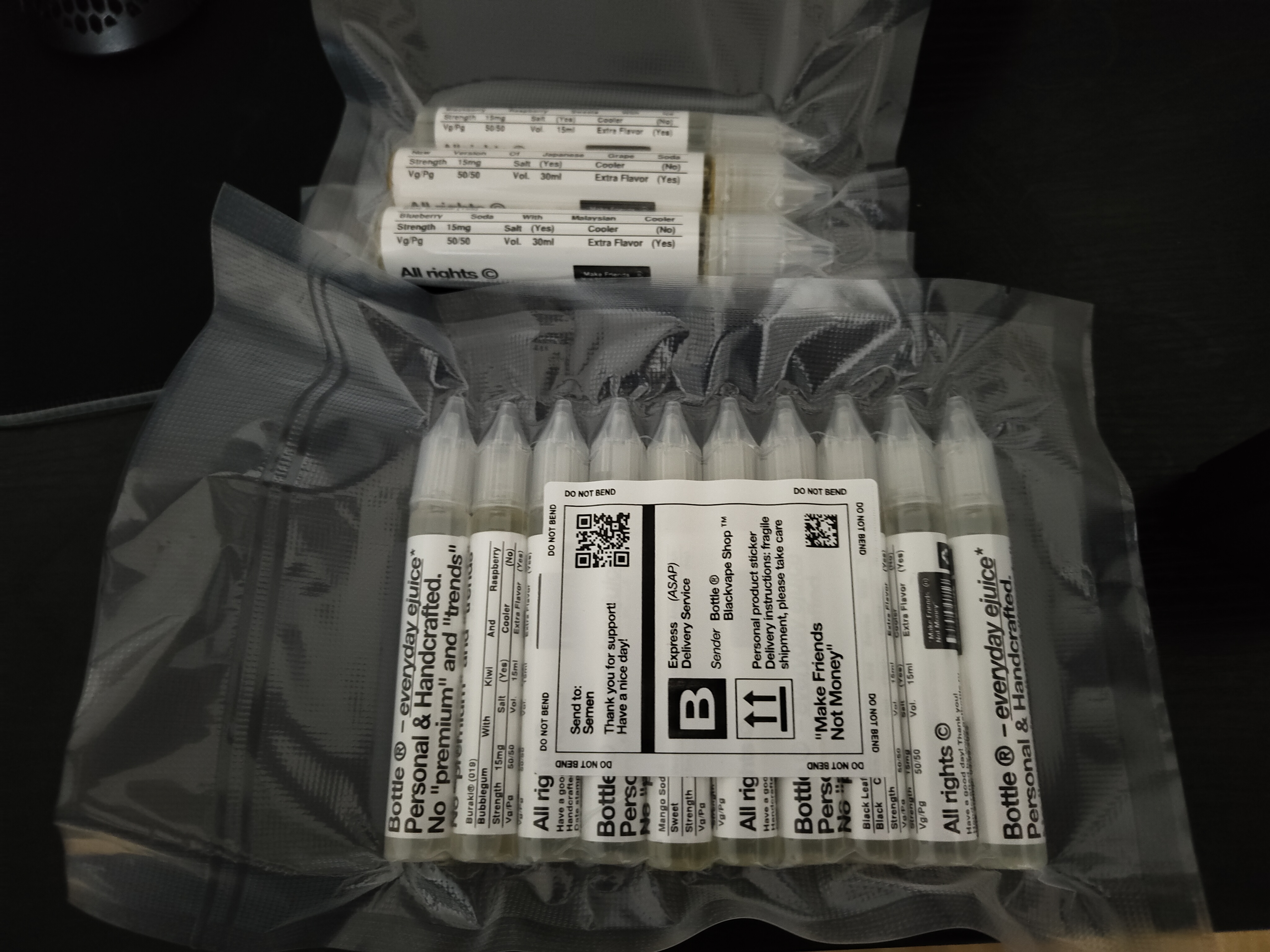 Обновляю, пришло всё в картонном пакете, жижки были запечатаны в вакуум, наверно так лучше, чтобы не выветривалась жижа. Заправил вкус как на третьем пикче, вроде норм, но никотин лично для меня непонятный, будто намешали с щелочью, остаётся такая горечь чтоль. Ну это надо пробовать все вкусы, на запах все классные.