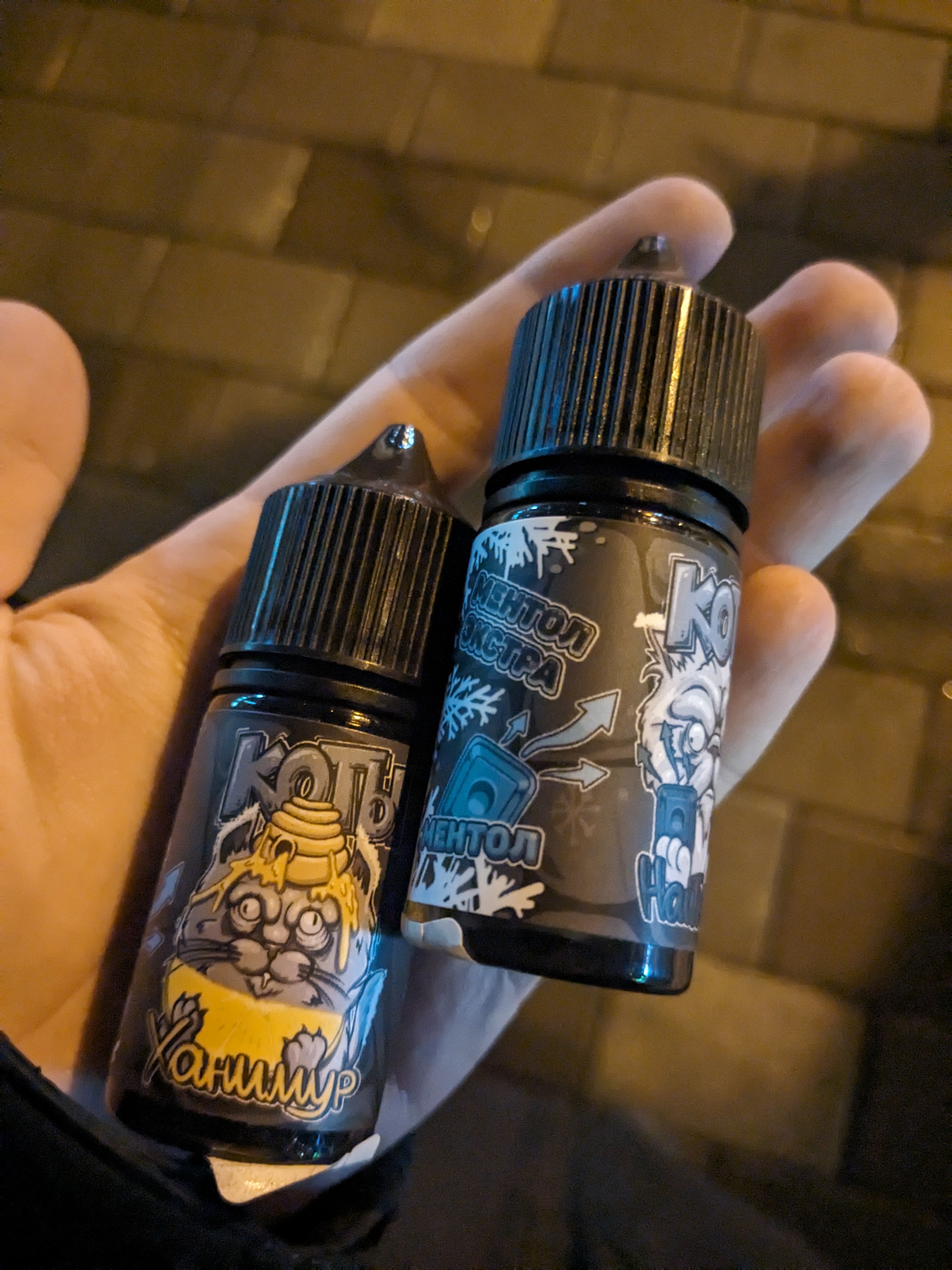 Шел сейчас в местный гей-шоп с мыслью "хочу чего-нибудь сладенького", долго рыскал по полкам, пока не наткнулся на этих двух няшек по 230р каждая, мед-цитрус и ментол, пробовал кто? Очень надеюсь, что ментол по вкусу будет похож на охуенный щелочной ментоловый збс/втф, флаконов 10 наверное в свое время его выпарил