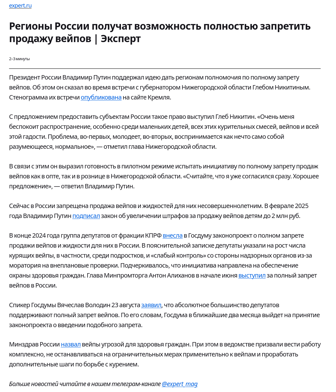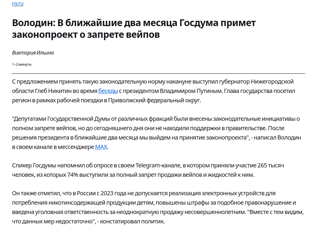 Это конец. В Госдуму внесут проект о запрете продажи вейпов и электронных сигарет.
