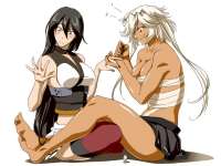 Каждый вечер принудительно завершаются рейды.Корабли встают на прикол.Девочки идут в бани, а после, тайком в комнатах своего общежития, собираются небольшими компаниями, ведут негромкие разговоры при горящих светильниках и расслабляются как могут: те что помладше едят сладости. Особы, перешагнувшие порог юности же, угощаются символическими дозами разбавленной рисовой водки из маленьких пиал.-Кампай! - и придерживая пиалу обеими ладошками, опрокидывают их содержимое в собственный пищевод.Замирают, не дыша, наслаждаясь ощущением горячей волны, скользящей по пищеводу, чтобы устроить в конце своего пути горячим пушистым комком где-то в желудке.Лишь тогда тянутся палочками за нарезанными кусочками соленой рыбы - приготовленная на собственной кухне, она отдает лимоном и уксусом, и легкая кислинка растворяется на кончике языка. После просто разваливаются на разбросанных подушках и молча смотрят в окно, на бескрайнее звездное небо над морем.Где-то гремят пустыми ведрами - израсходованными за сегодня. А вот пронзительный гудок локомотива с далекой станции - новая партия материалов прибыла, а значит завтра их ждут новые бои, новые раны, и жаркие битвы в холодных водах осеннего стылого моря.Моря, из которого они будут возвращаться, пить обжигающе горячую водку из холодильника, и сбиваться на сон в центре комнаты, прижимаясь спинами друг к другу. Жалея, что не могут познать большего: жара крепких сильных рук и обжигающих кожу горячих поцелуев. Но единственный мужчина, которого они подпустили бы к себе - адмирал, а он ни разу не позволял себе чего-то вне уставных отношений. И вряд ли позволит.Потому что Хирю, дрянь этакая, прошла модернизацию, и просрала все улучшенное оборудование. Нет, ну как так можно было?