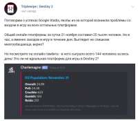 Почему у этих рукожопов снова упал сайт и в придачу еще и дисконнекты baboon, в пояснеии к которой, естественно, говорится, что бонжи ни при чём, это всё ваше соедиение, провайдер, ваше небо, ваш аллах. Хотя даже https://downforeveryoneorjustme.com/ и https://downdetector.com/status/destiny/ говорят об обратном