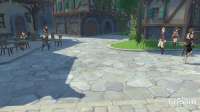 15. Площадь перед отелем – прямо на фонтане обосновалась практикантка музыкальных искусств, и что-то там пытается музыцировать. Фатуи на входе в отель воспринимает работу максимально серьёзно, так что лучше не задерживаться...