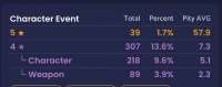 >>39950340 >Есть статистика игроков с тысячей-другой круток? Есть вот такой небольшой китяра, скрин как-то сохранил из дискорда. Довольно показательная статистика.