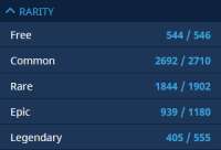 >>40073163 Че за чушь на пикриле? Как у тебя может быть 519 легенд (сейчас их в игре 555), и всего 1257 коммонок, когда их в игре 2710, 870 рарок, когда их 1902, ну и эпиков 552, столько же сколько и легенд Лол, код правил что ли