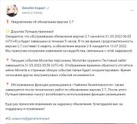 ✨ Дорогие Путешественники! Ожидается, что обслуживание обновления версии 2.7 начнётся 31.05.2022 06:00 (UTC+8) и будет завершено в течение 5 часов. В то же время, продолжительность версии 2.7 составит 6 недель, а обновление версии 2.8 ожидается 13.07.2022.