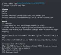 >>44348716 В комментах. Источник левый + описания скиллов очень размытое специально чтобы не вызвать подозрений, зато некоторые бафы точно описаны, это при том что в игре везде соблюдается соотношение кр кд 1 к 2, а в пассивке нет. Чел просто прочитал сливы убачи и на основе их сфантазировал комплект чтобы было похоже, а общем сидим пердим. Лично меня ещё и оружейка смутила, которая бафает тиму просто за элемент в пати, причём в точности как гильдед дрим. В общем расследование успешно, 99.999999% что это фейк, слишком уж деревянной сделано по всем канонам жопомасел.