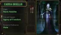 Выводить Кассию в свет и социализровать буквально тема ее квеста. Скорее всего львиная доля этого будет еще и в романе. Потрясающий персонаж. Она собственно никому и не предлагала выдирать языки - я интереса ради переиграл этот момент - лишь поинтересовалась, почему вольный торговец не следует традициям связывания слуг с господином. Традициям, которые ей были внушены и были рутинны именно как тема Орселлио. Но нахуя вообще как-то там думать и рассматривать персонажа с более глубокой позиции, да?