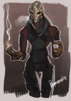 >>48067238 Ну так турианка свои прикрывает же... Короче, долго объяснять, вот оригинал >Gabby ran the damp towel through her hair. She gazed at the milling crowds of turians and a frown creased her brow. There was one strange characteristic of her turian hosts that piqued her curiosity - One aspect of their biology that she needed an answer to. After a moment's thought, she turned back and approached the asari. "Erata?" she began in a hushed tone. The asari opened her eyes. "What's the deal with those two marks on the turian's chests?" She indicated her own chest to illustrate the point. "They look like scars." Erata glanced at the aliens in the room. Then she smiled. "Well, isn't it obvious? They're all women. How else are they going to feed their children?" "Oh!" Gabby started in surprise. "You mean they're…" Erata nodded and gestured at her breasts. "…The turian equivalent of these puppies!" she clarified, grinning. "I believe the technical term for them is coenotergeminal epicormica. Only women have them. Turian biology keeps everything protected under the carapace. The glands lie dormant beneath the skin until hormone changes at puberty force them to grow through the carapace. They're epicormic. Hence the name." Да, это фанфик, но 1) он охуенный 2)звучит логично, так что это мой хедканон