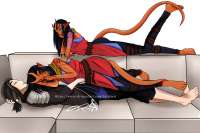 > Жар, исходящий от тела Арушалай, согревает вас и наполняет покоем. Закрыв глаза, девушка прижимается к вам сильнее, ее лицо тянется к вашему...