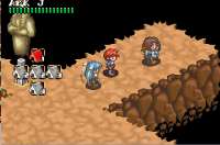 Определить жанр игры тоже довольно трудно. В тот самый давний первый раз по скриншотам я подумал, что это тРПГ- о, как же я заблуждался. На деле игра ближе всего к какому-нибудь Ys 2, только с элементами простенькой головоломки... типа леммингов что ли. Главный герой управляется напрямую, а вот спасенные пассажиры, число которых по мере прохождения игры будет увеличиваться, перемещаются исключительно по указанным им точкам (можно указать до трех за раз). Перемещаются они не по одному, а отрядами до четверых рыл, однако внутри отряда можно каждому отдать свою команду. Только пока не отходит текущий отряд, остальными командовать будет нельзя, причем нужно не только отходить, но и чтобы весь отряд собрался в одной точке через команду "для всех".