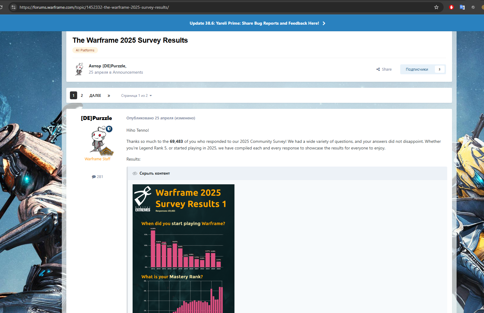 Какие же разрабы рофлеры. Не играл в эту дроч несколько лет. Зашёл, выменял на хлам из хранилища Прайм версию любимого варфрейма. Получил бан торговли и варфрейм забрали. Пиздец. Поддержка на русском работает?